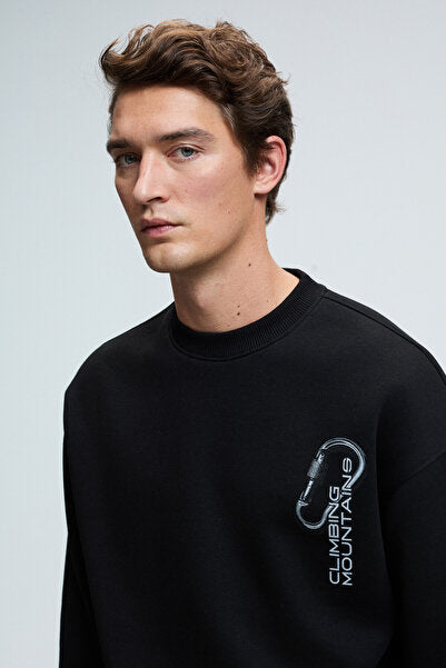 ALDEN Men's Round Neck Chest and Back Printed Relaxed Fit Black Sweatshirt