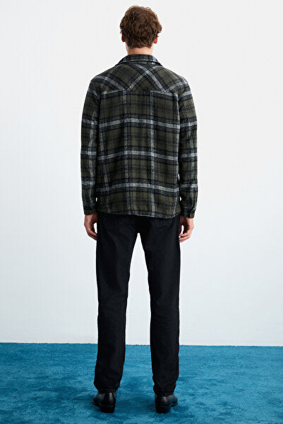 Allenı Men's Cotton Shirt Collar Relaxed Lumberjack Khaki Shirt