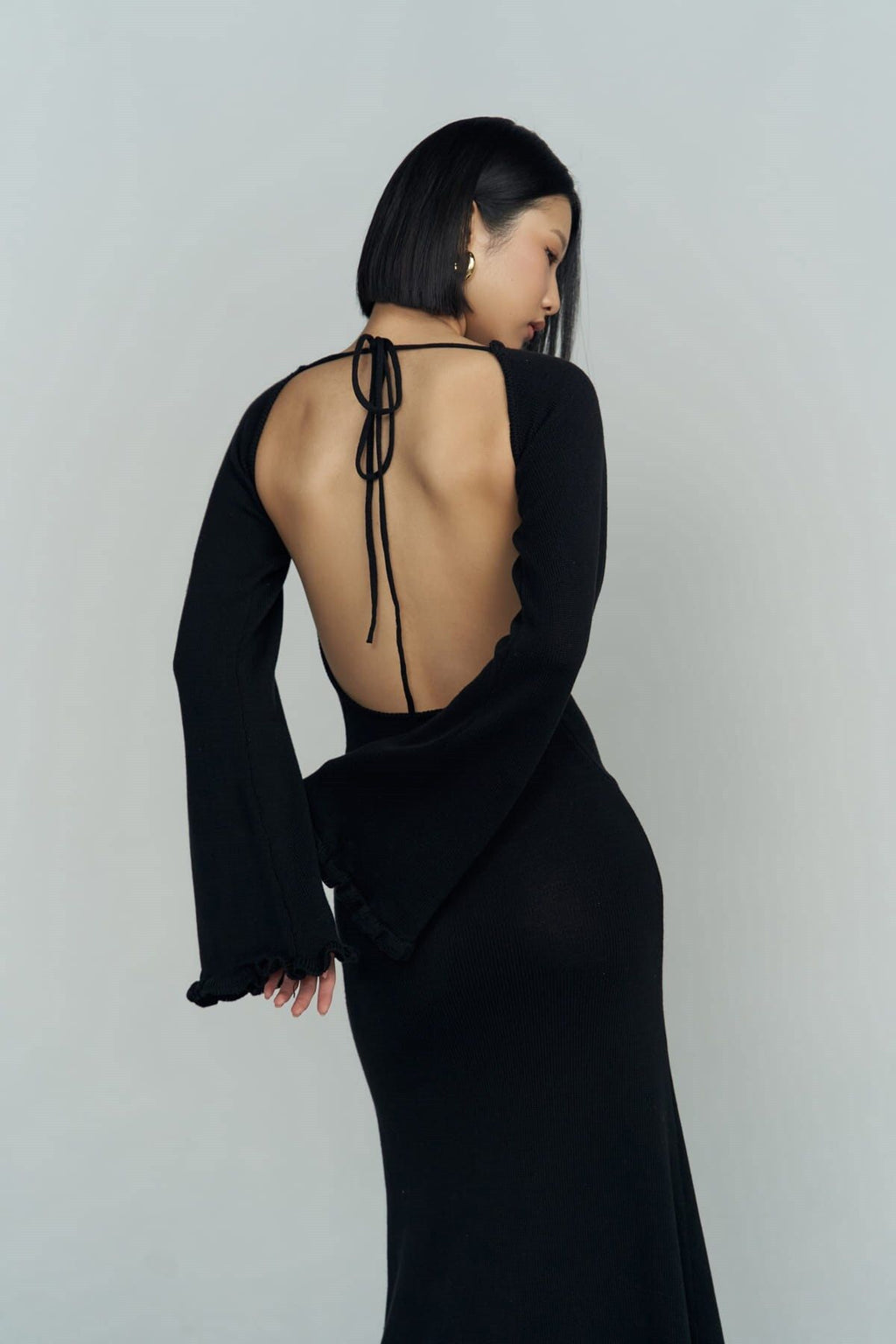 Angela Back Décollette Black Knitwear Dress