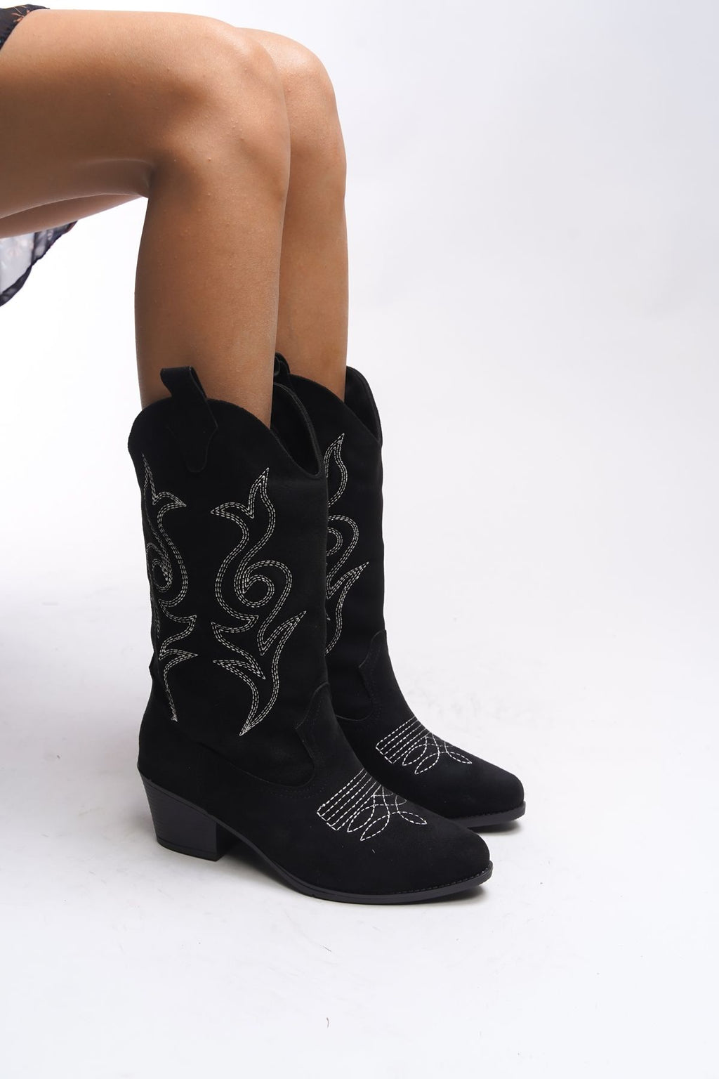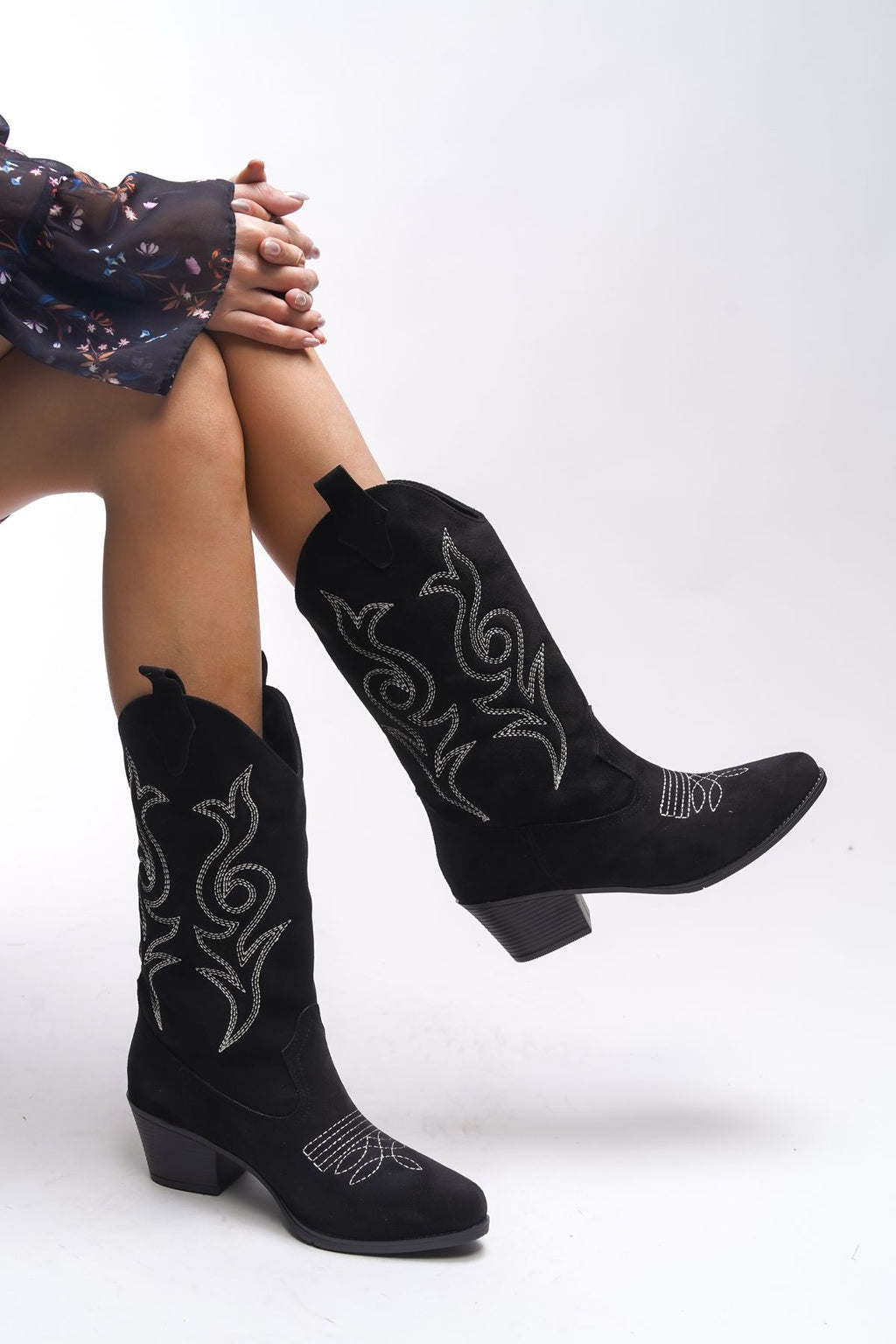 Beicilia Woman Embroidery Western Boots 001288 Black Suede