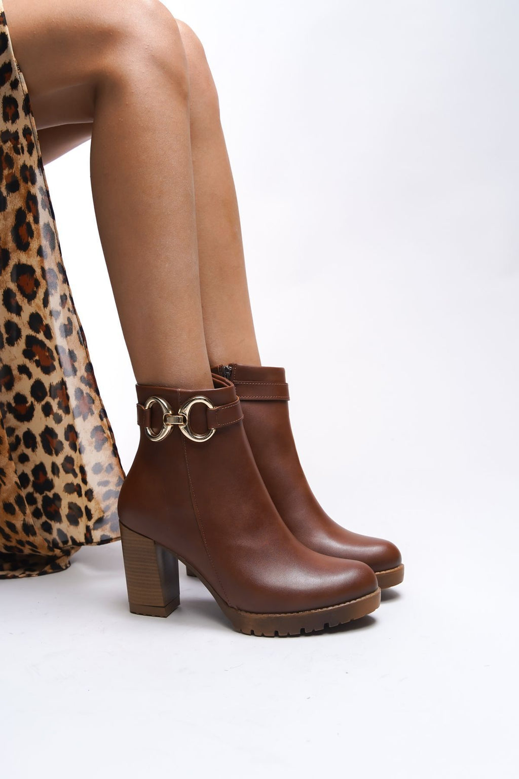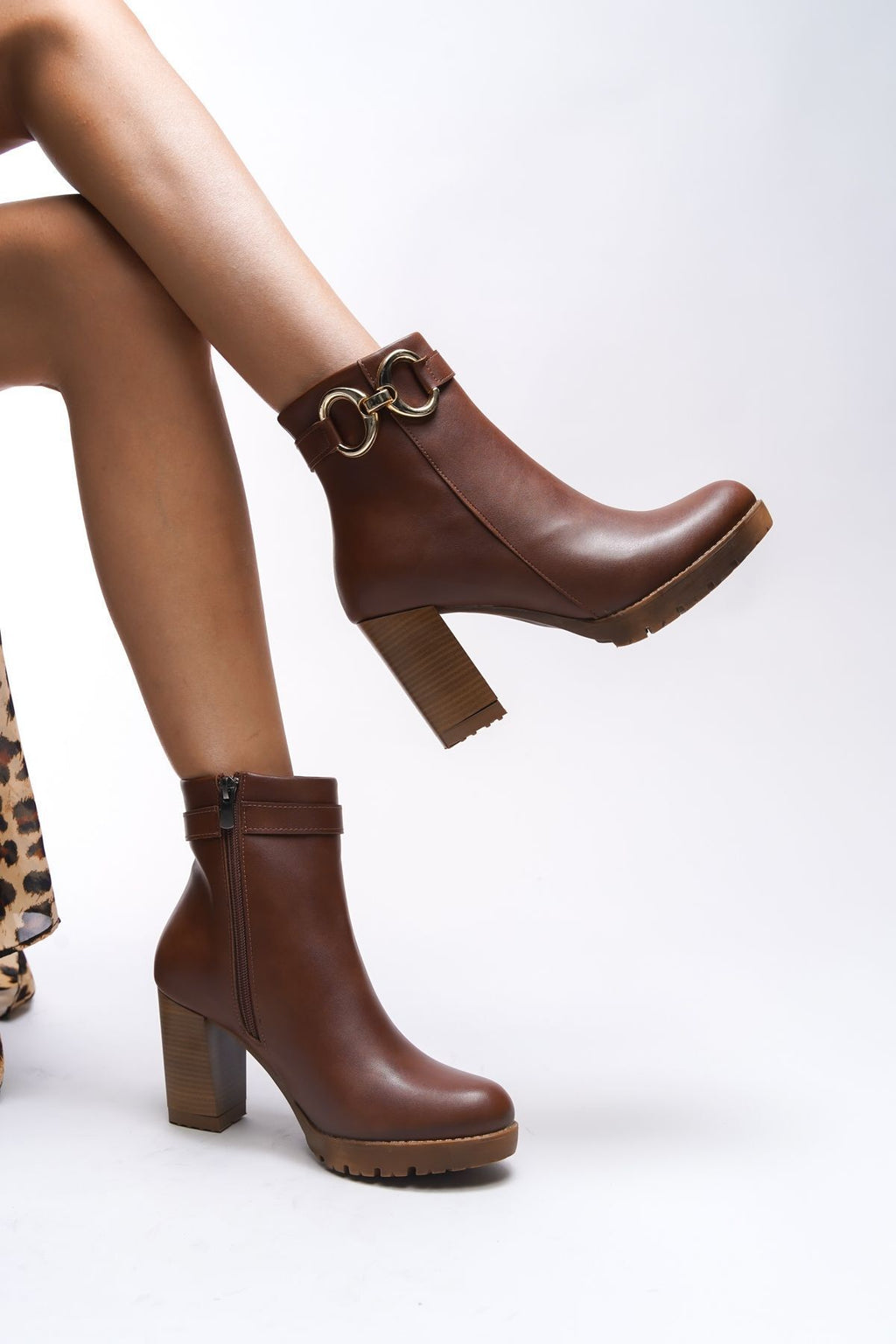 Beiverra women's chain detailed high heeled boat 0012502 taba skin