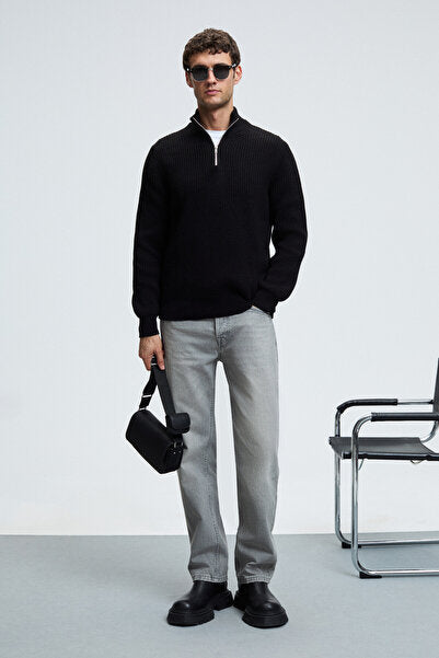 BERNARDO Men's Half Zipper High Collar Knitwear Black Sweater
