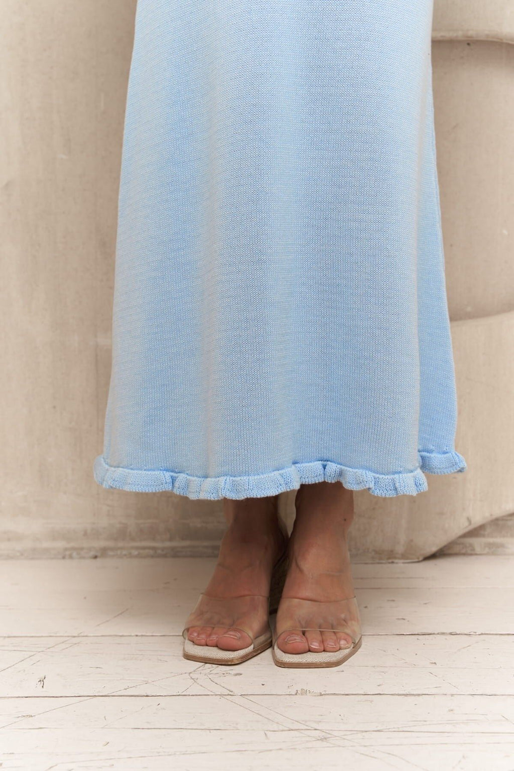 Blue knitwear dress with Angela back low
