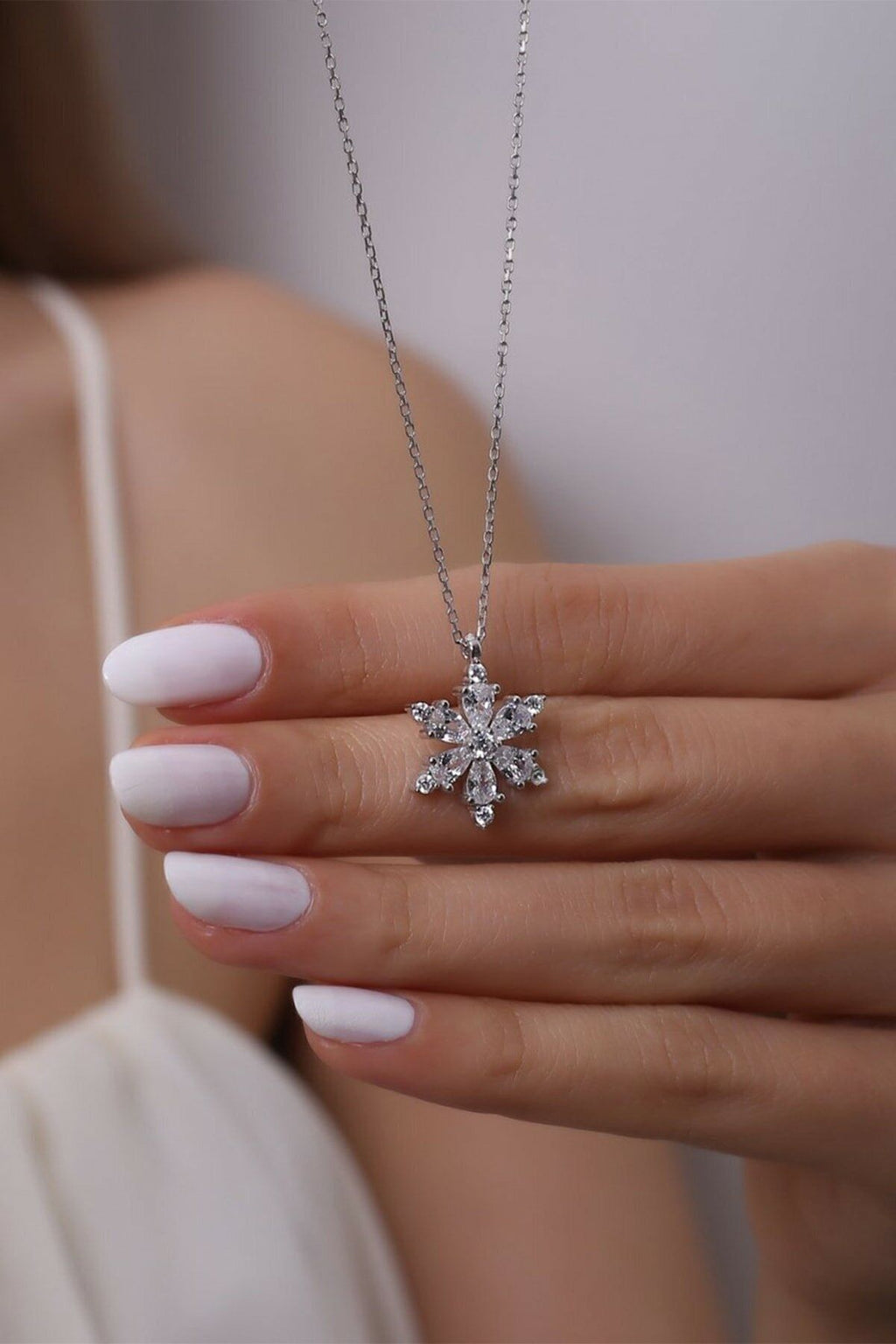 Camellia Flower White Stone 14 K Rose Gold Plated Women Necklace