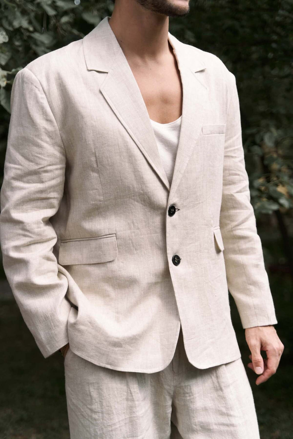 Carlo Natural Keten Erkek Blazer
