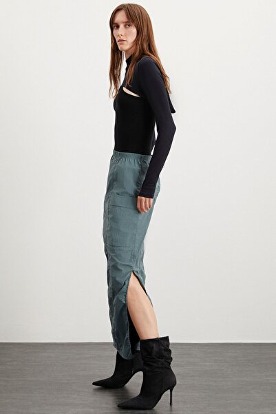 Cherı Women's Elastic Waist Waterproof Parachute Fabric Long Green Skirt
