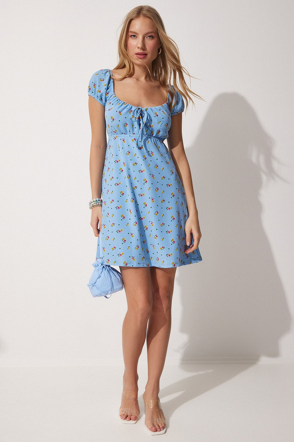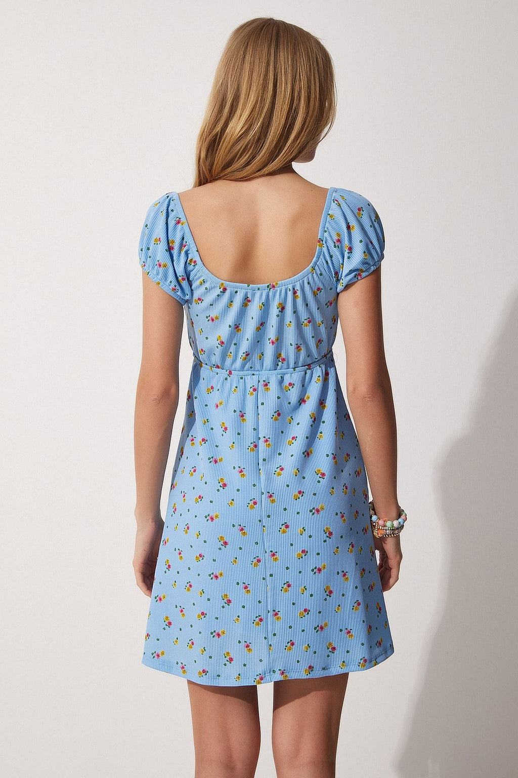 Çiçekli Carmen Yaka Yazlık Mini Örme Elbise