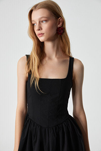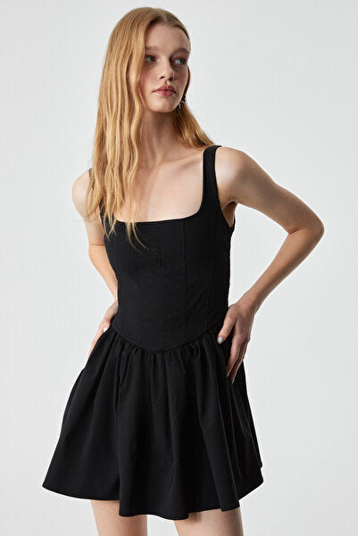 Doumbian Women's Slim Zippered Body-hugging Pool Neck Short Black Dress