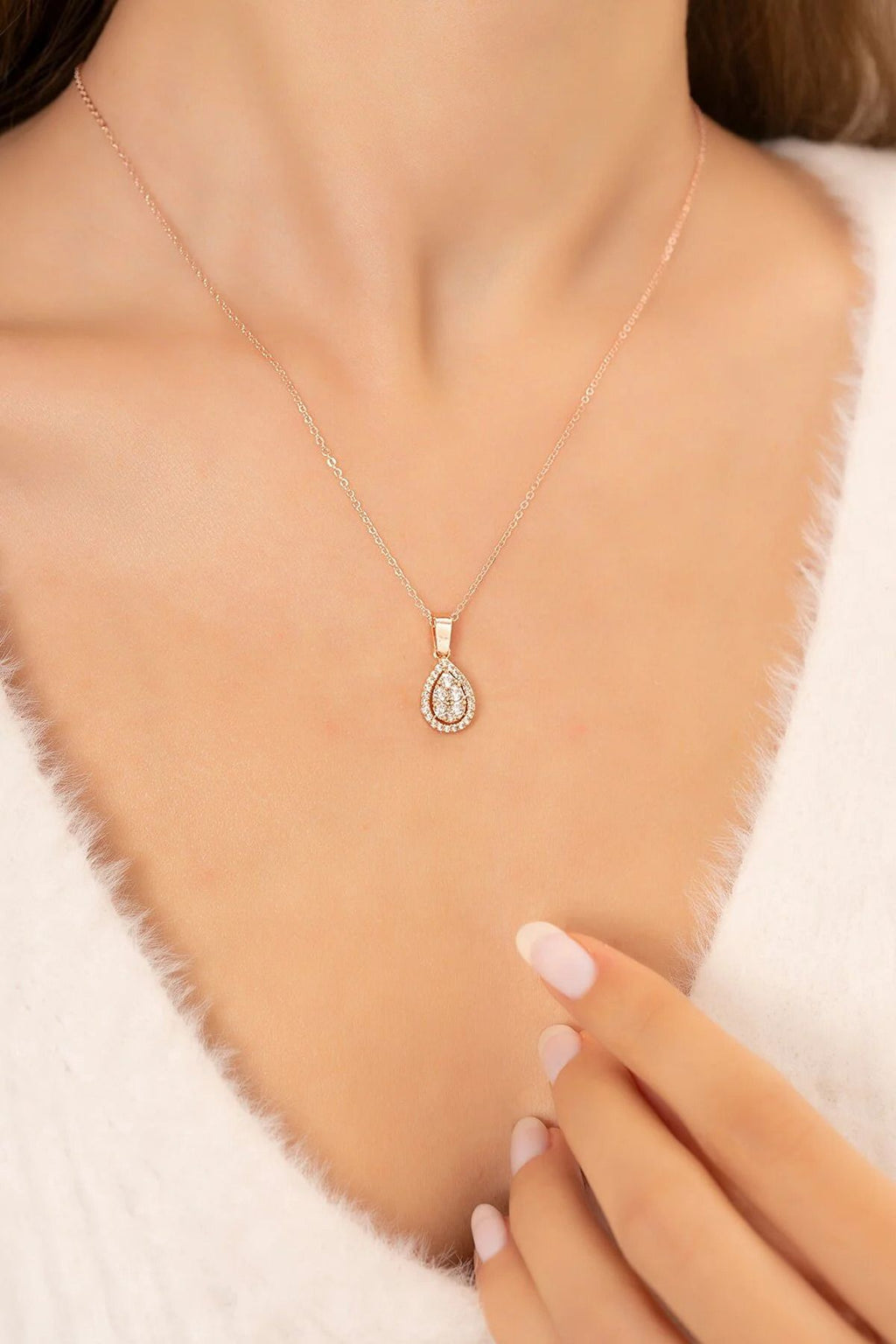Drop Single Stone Model 14k Rose Gold Plated Women Necklace