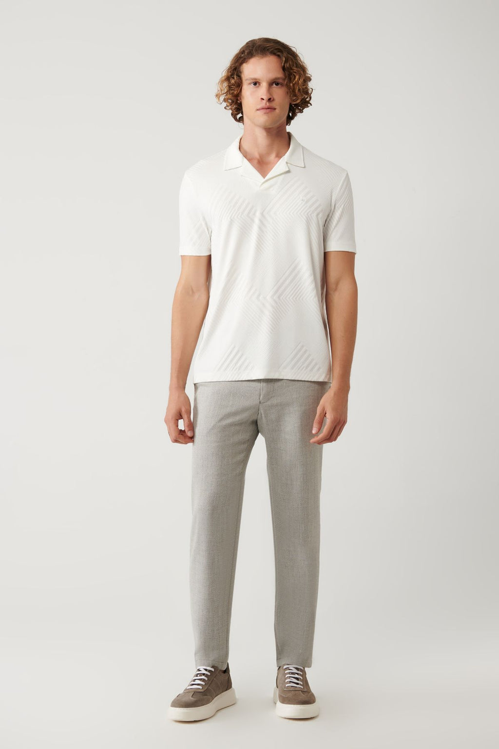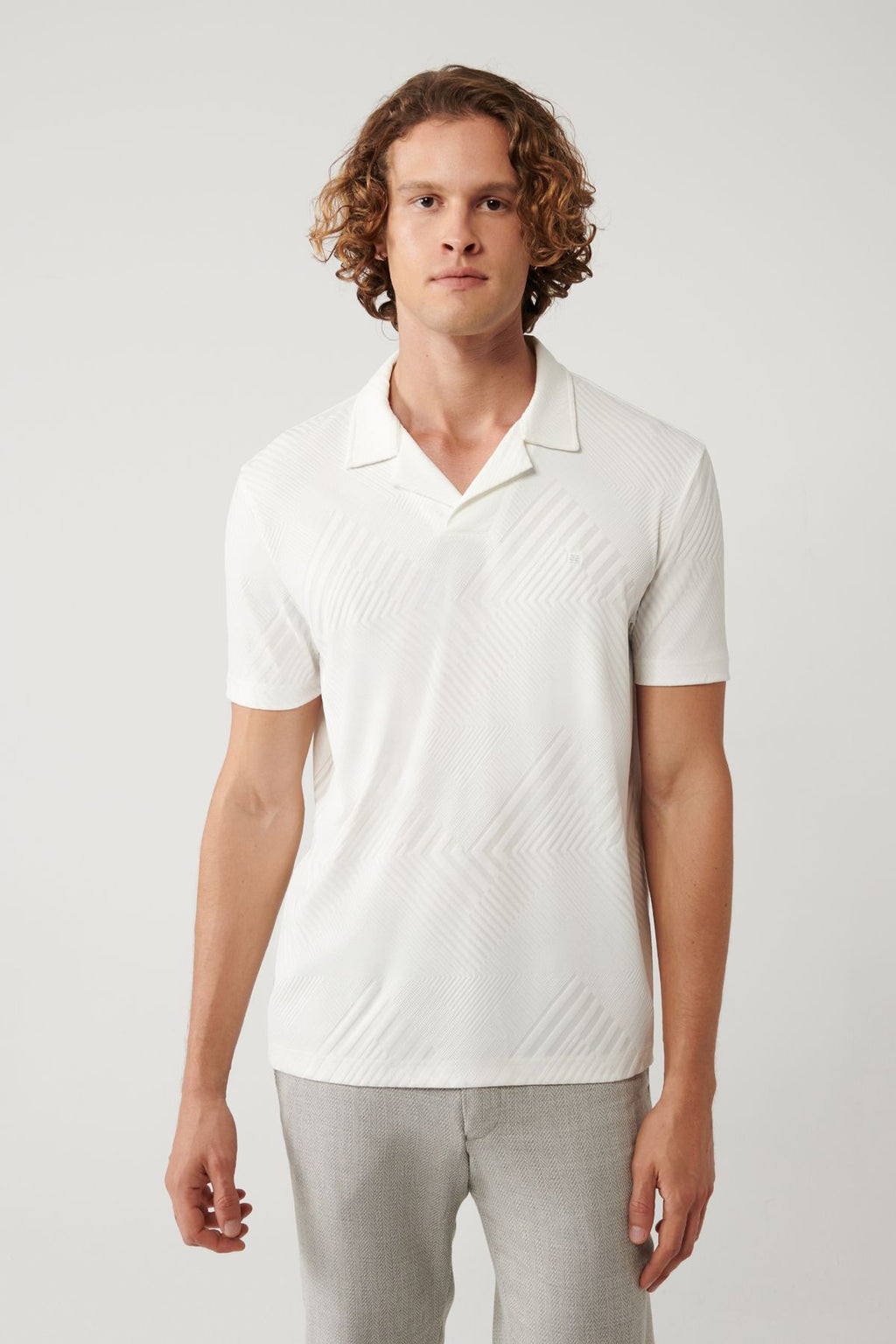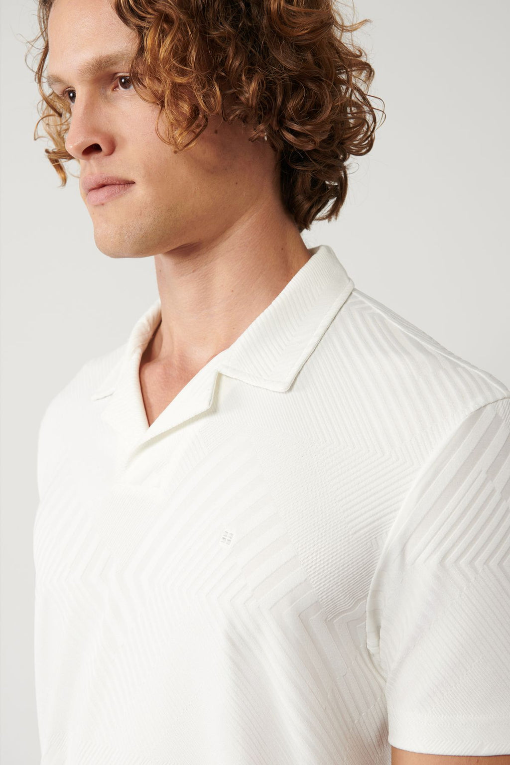 Erkek ekru apaj yaka jakarlı t-shirt a41y1141