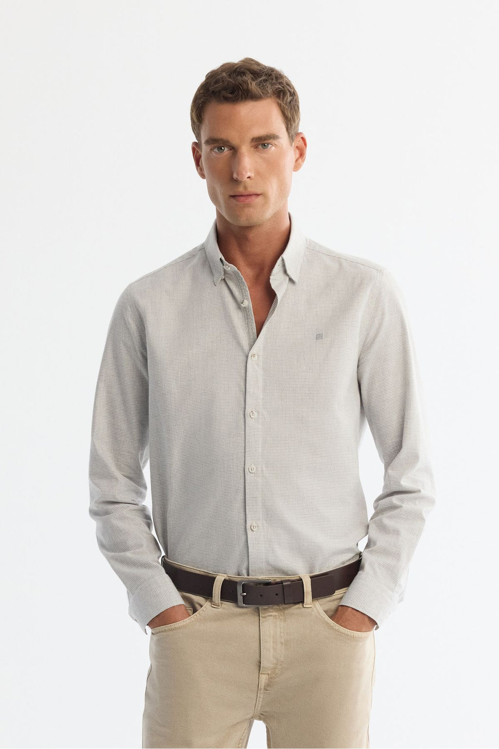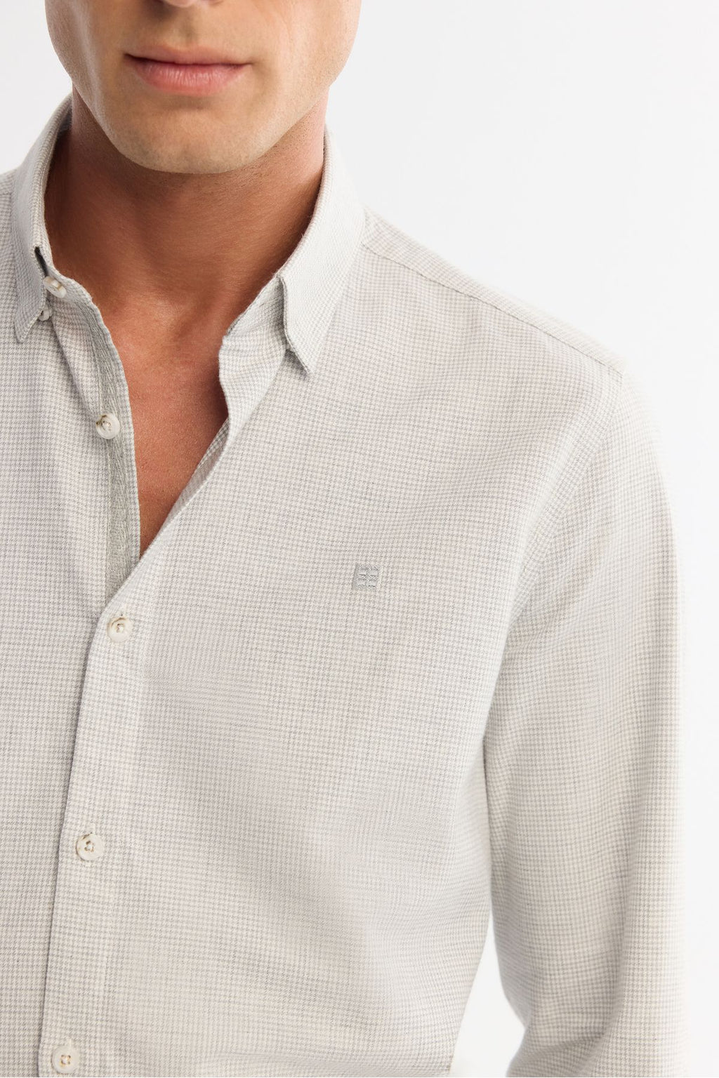 Erkek Gri Düğmeli Yaka %100 Pamuk Flanel Gömlek A42Y2002