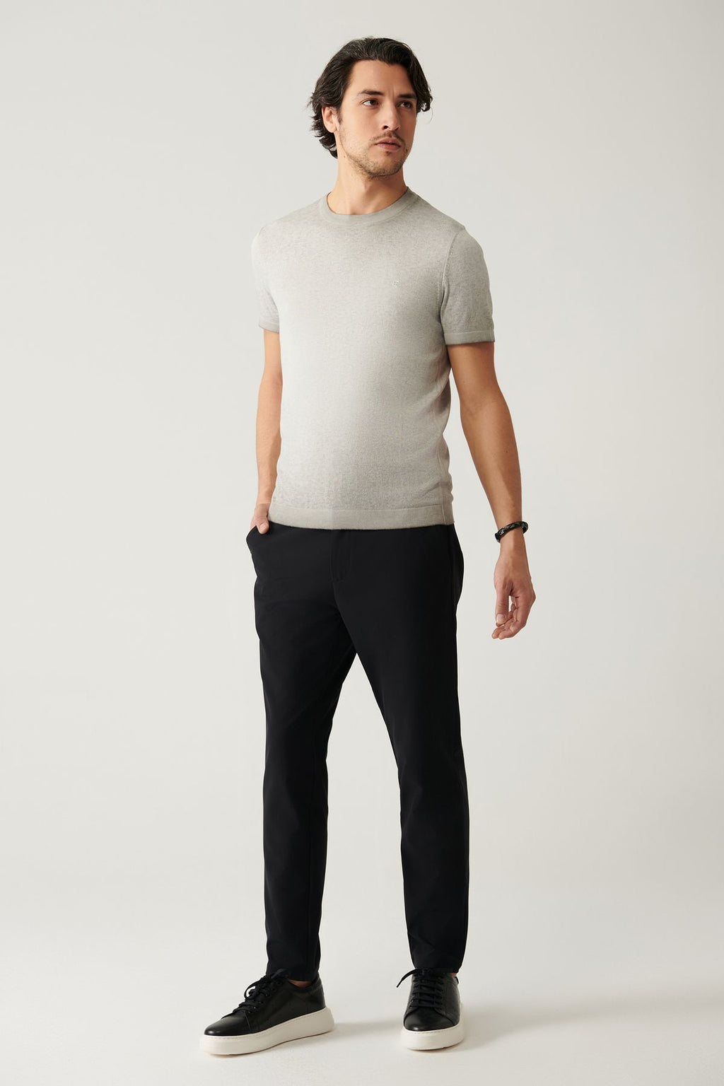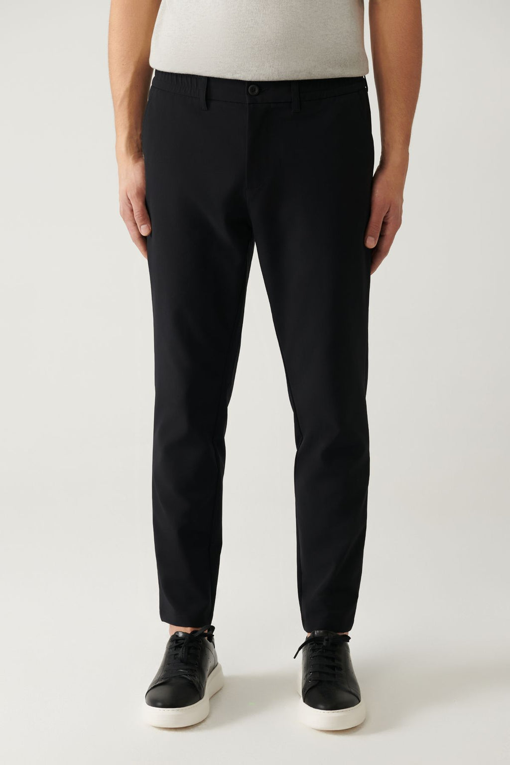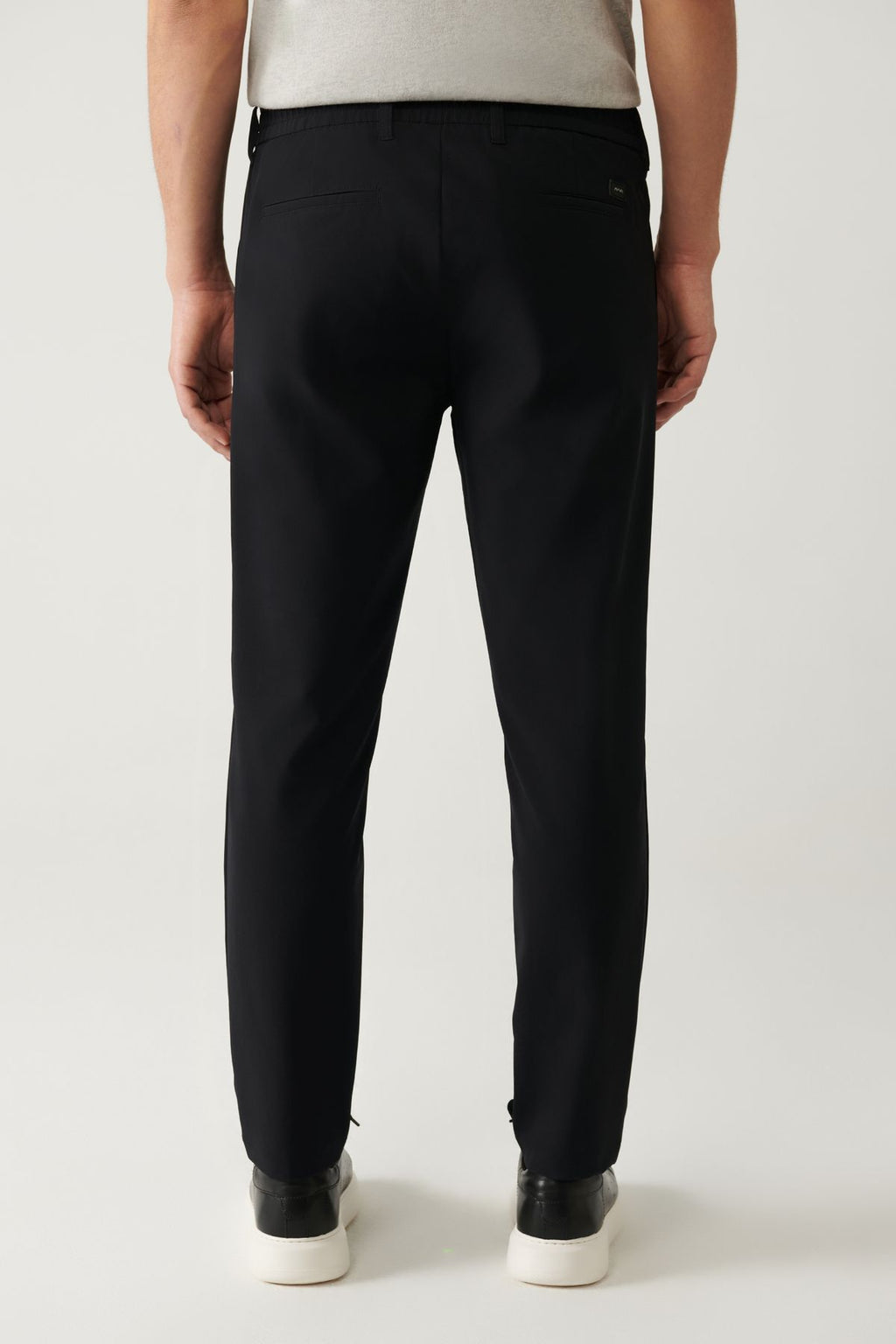 Erkek Siyah Beli Lastikli 360 Derece Esnek Teknik Kumaş Pantolon A41y3077