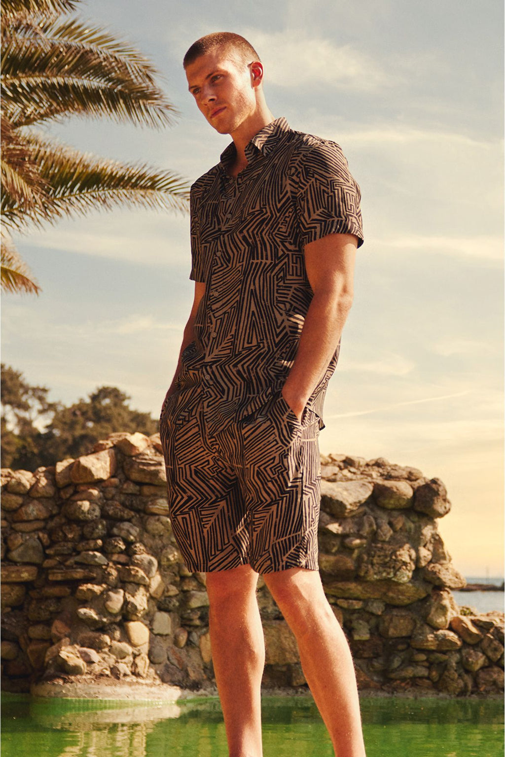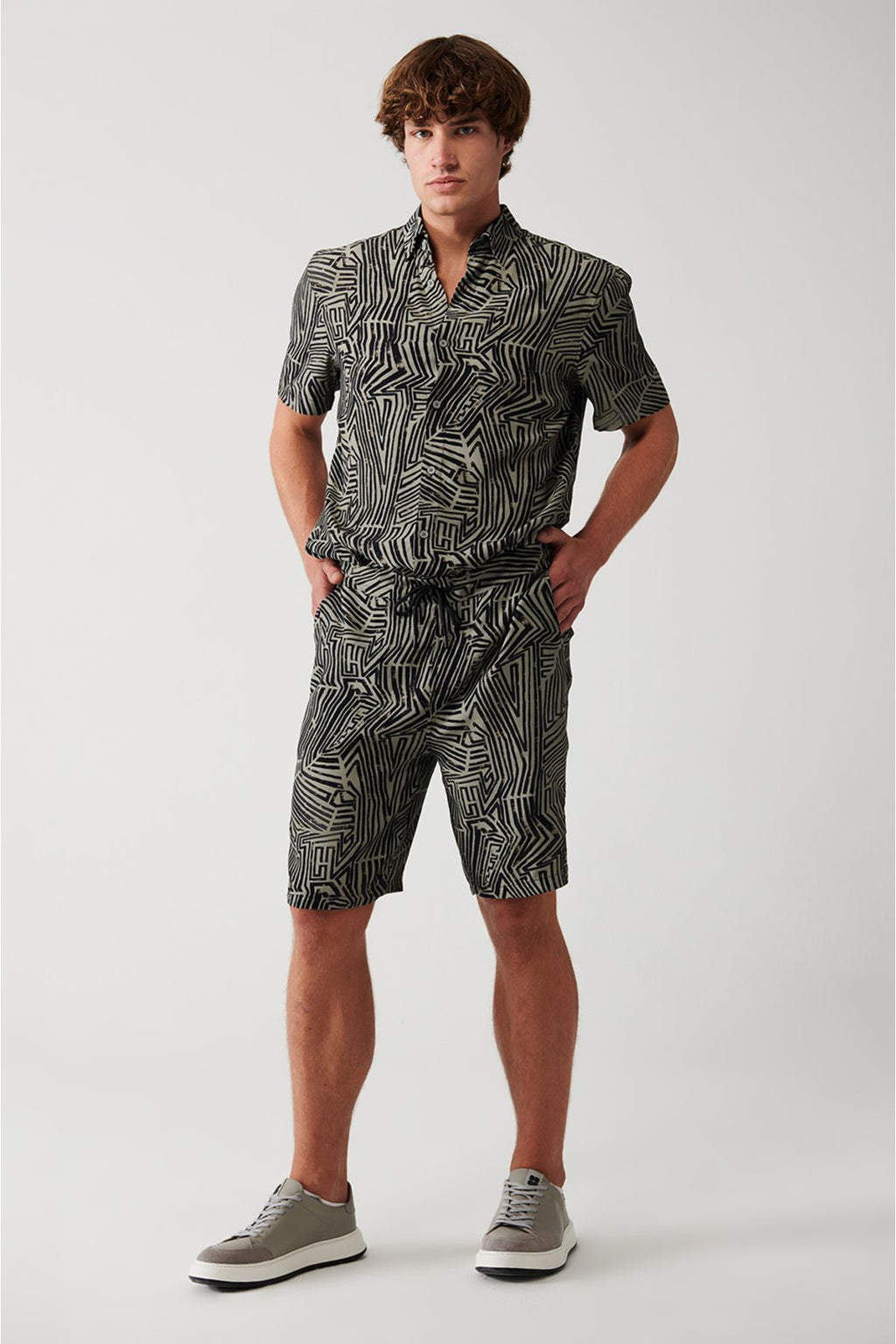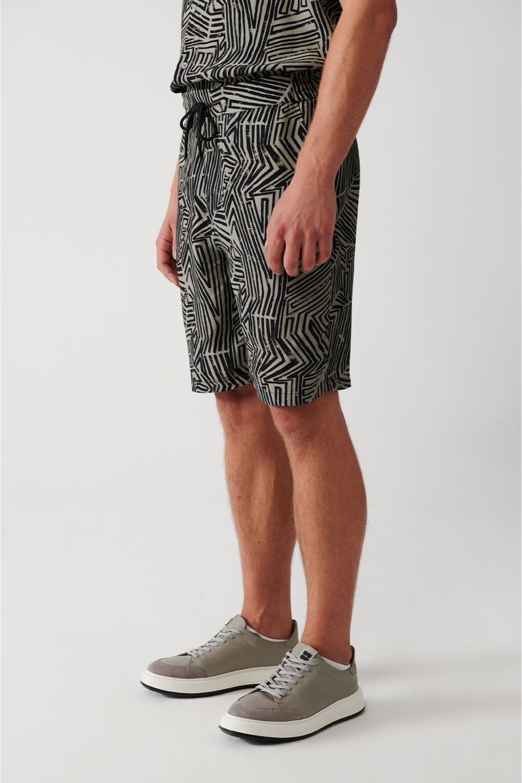 Erkek Vizon %100 Viskon Yandan Cepli Beli Bağcıklı Şort A31y3720