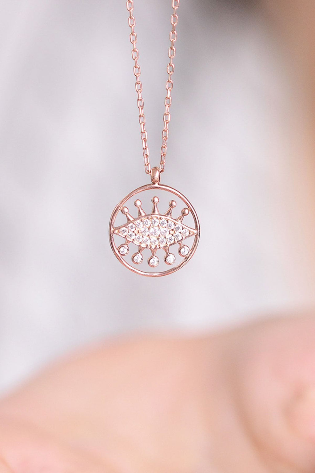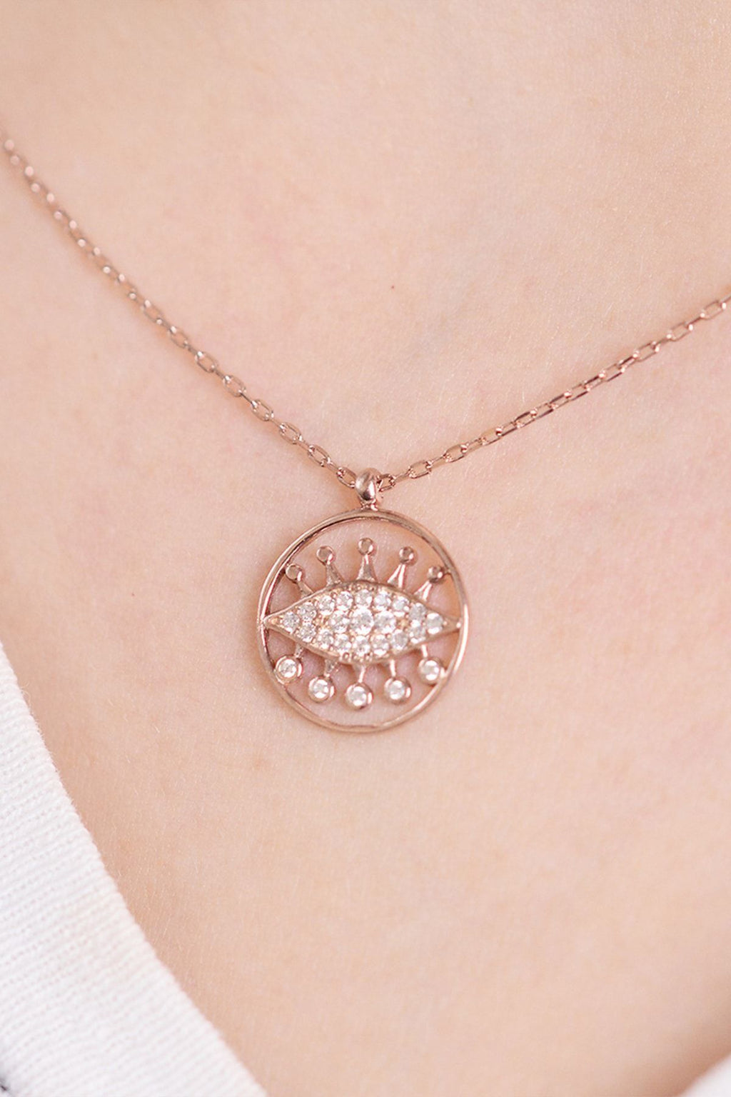 Eye with evil eye 14 k rose gold -plated women's necklace