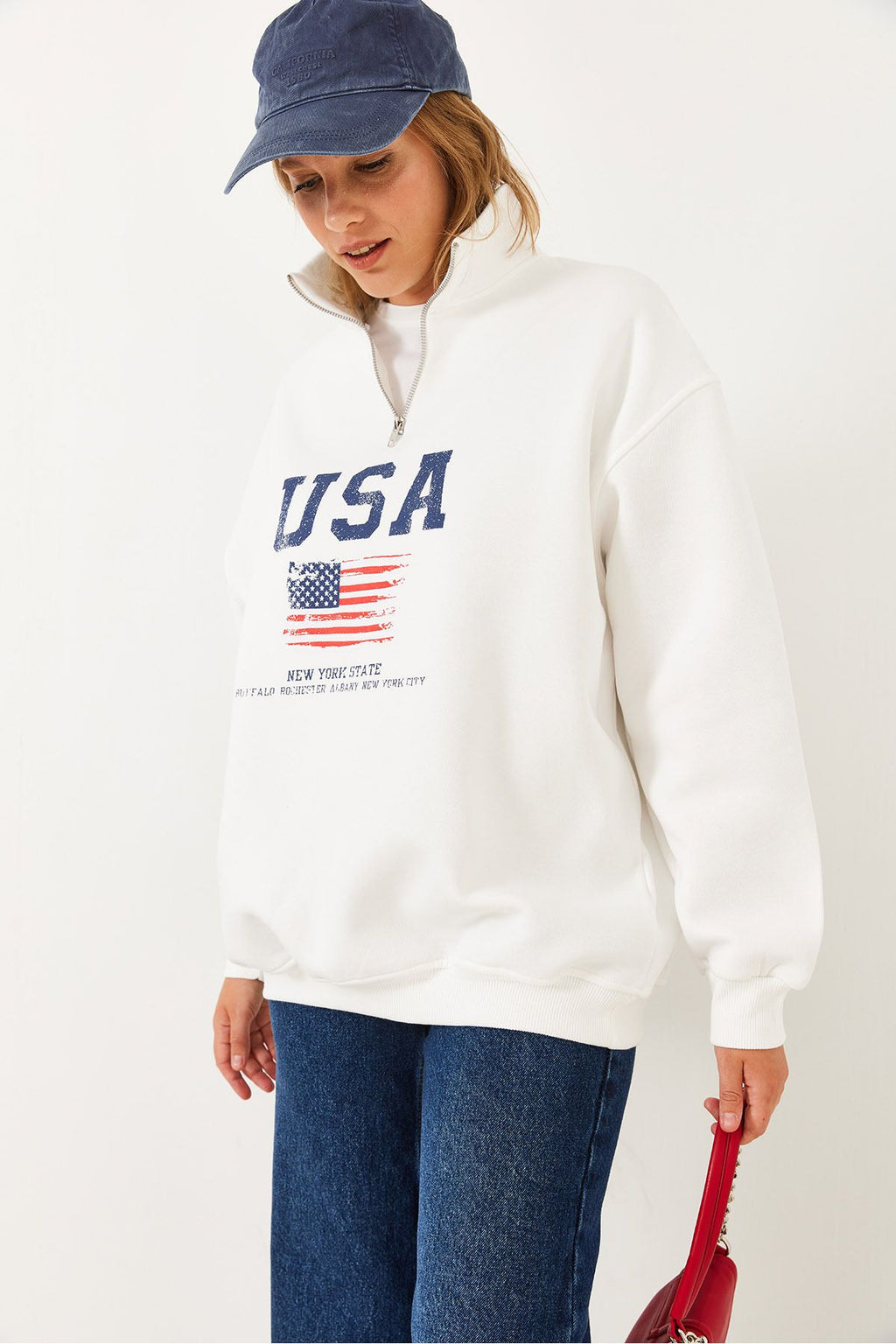 Female Arım Zippered Usa printed upright collar sweatshirt 60251880