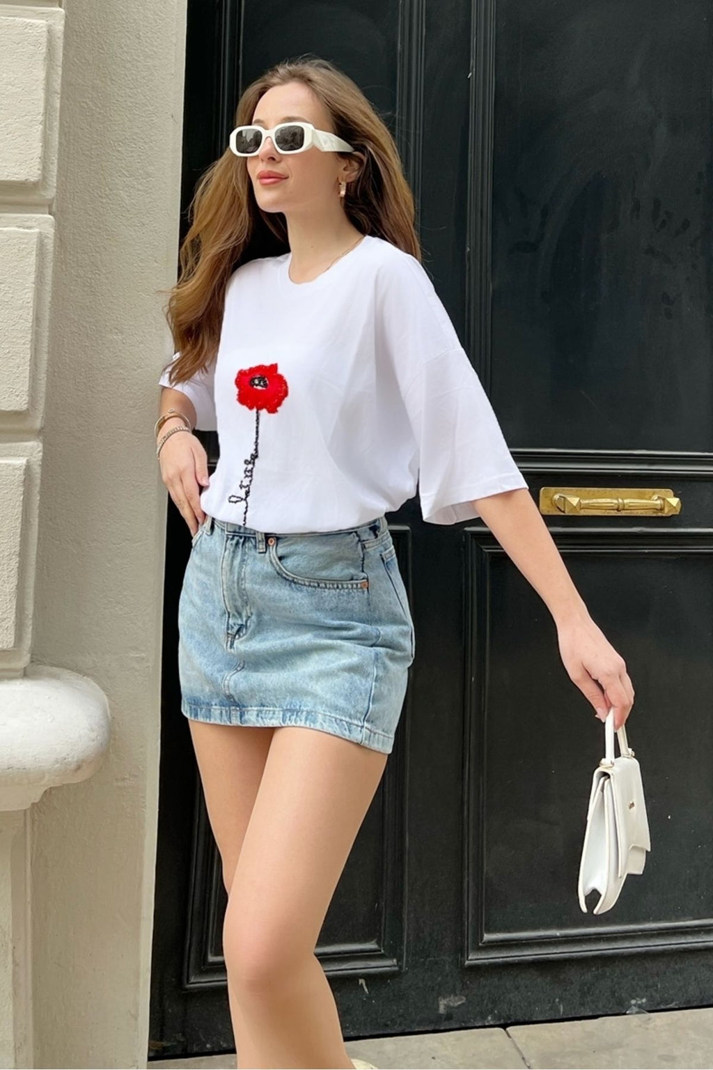 Female Bead Handcrafted Combed Combed Tshirt 60211012