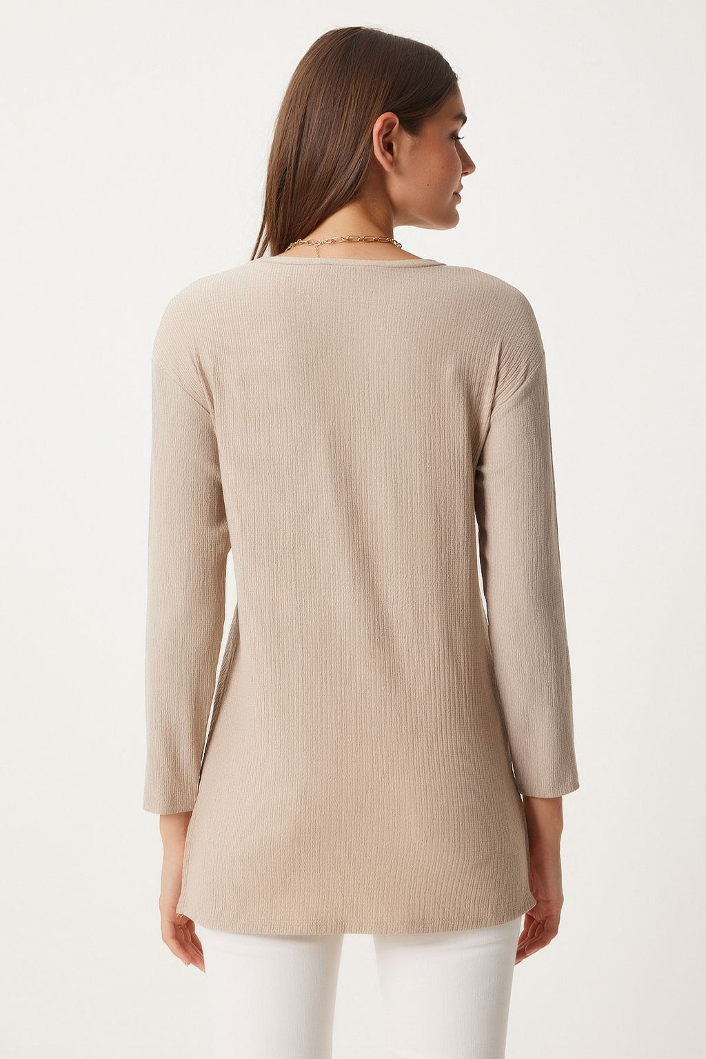 Female Beige Patterned Long Sleeve Knitting Blouse ZH00038