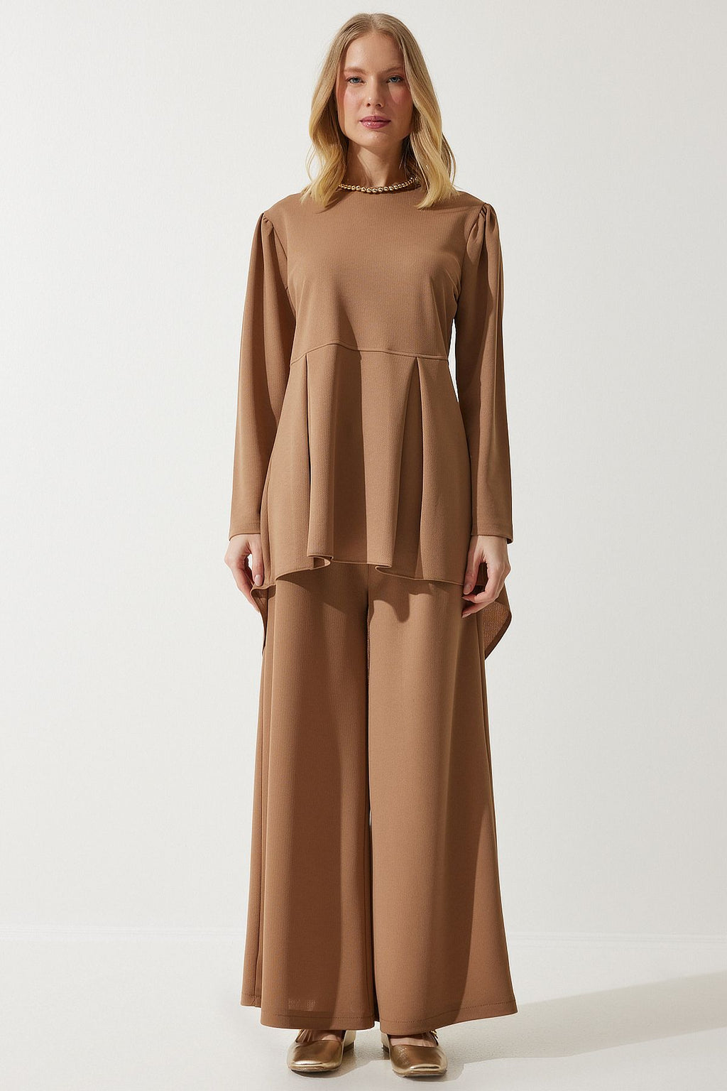 Female Biscuit Casting Tunic Palazzo Knitting Set DD01318