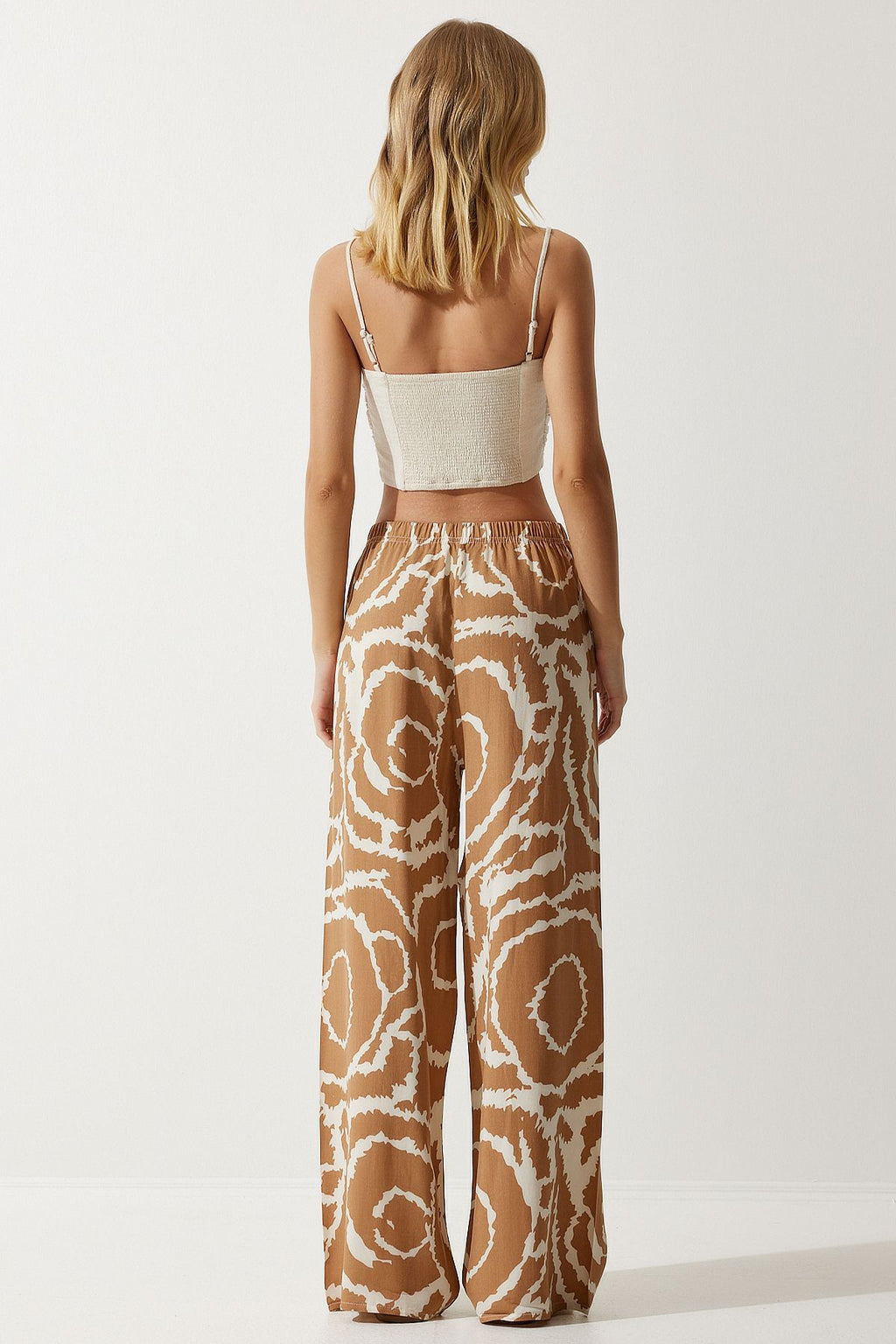 Female Biscuit Cream Patterned Viscose Palazzo Pants EN00606