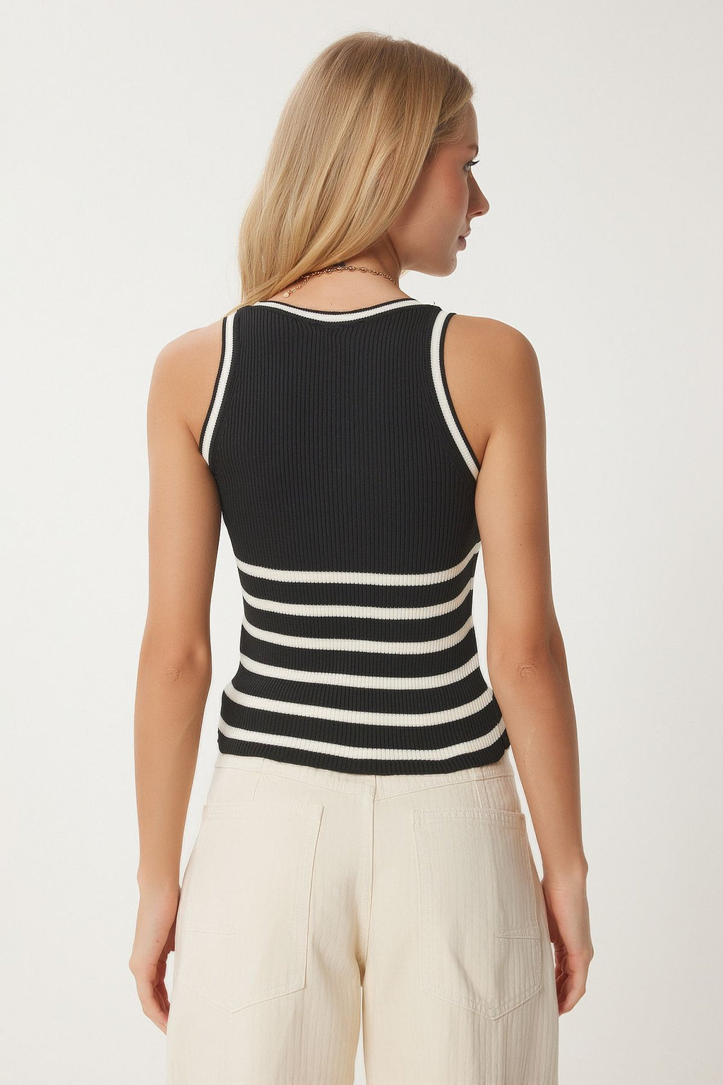 Female black cream striped knitwear blouse FN03451