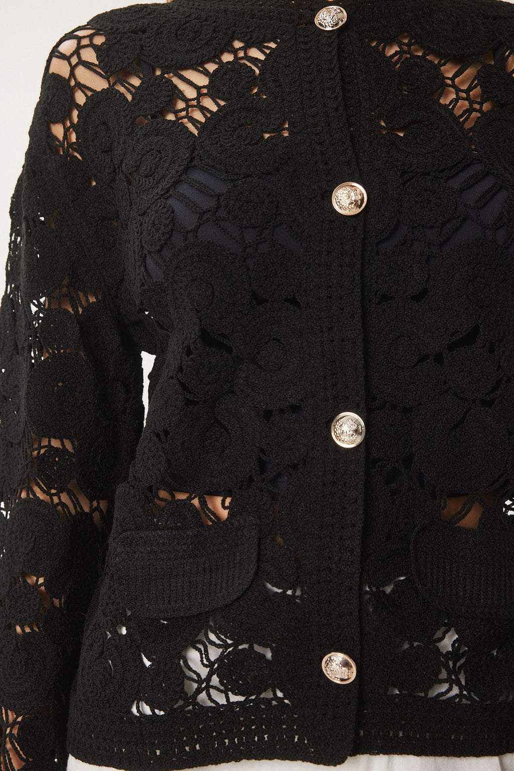 Female Black Flower Seasonal Triko Cardigan ES00175