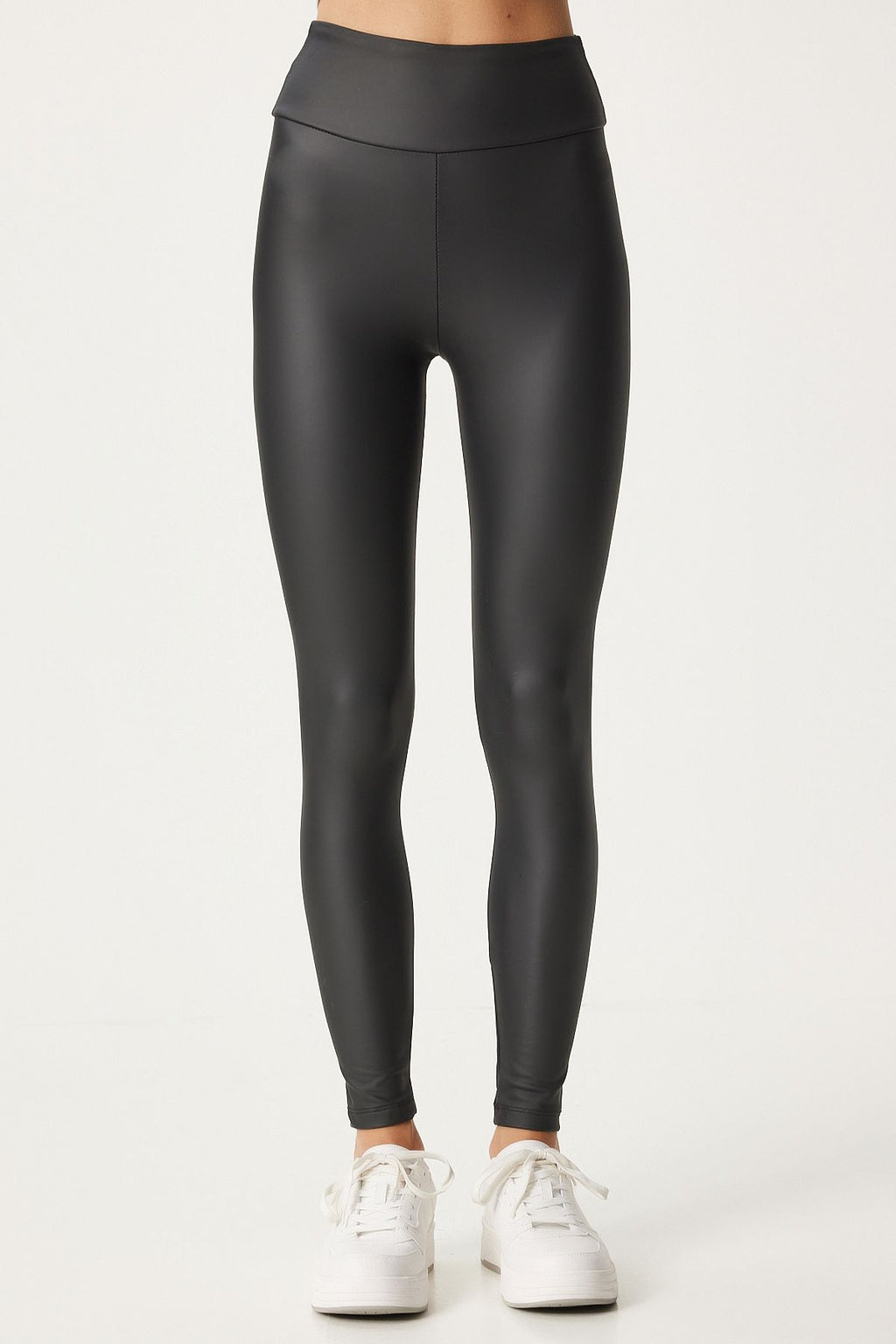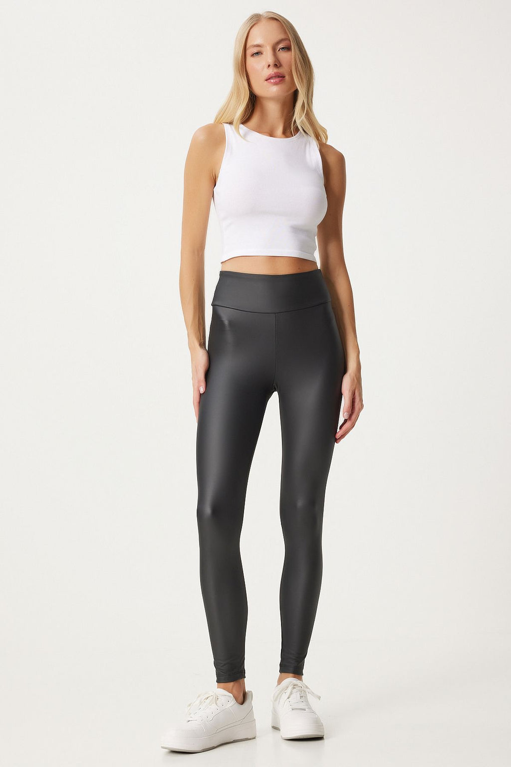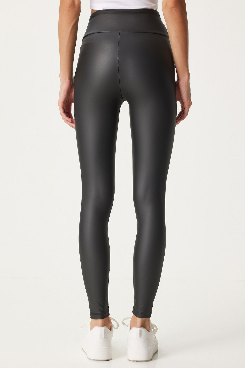 Female Black High Wa Linguist Sterecting Artificial Leather Tight Be00021