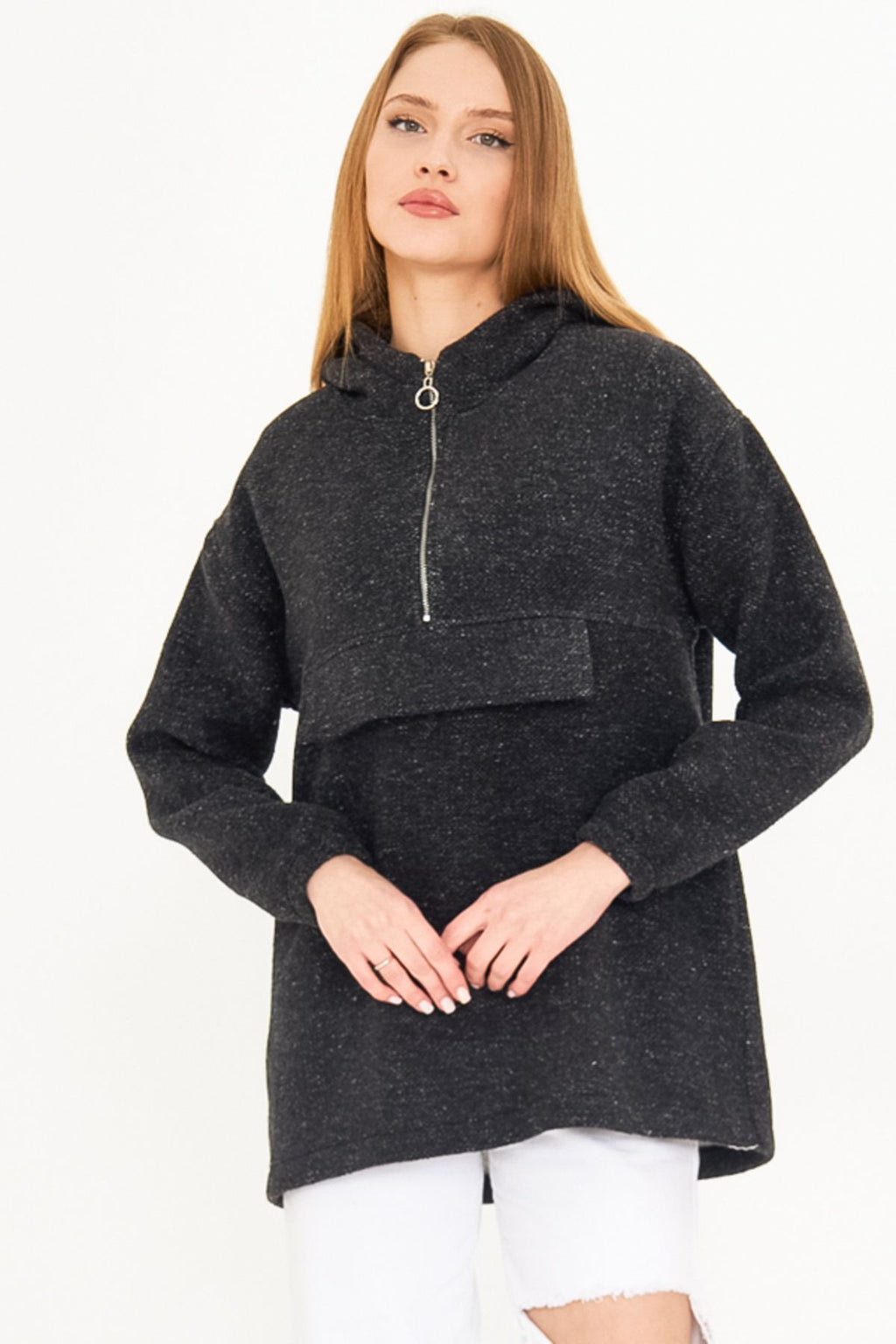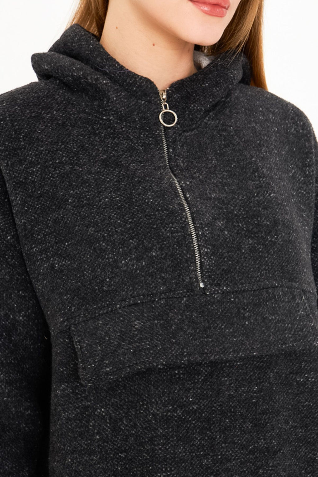 Female Black Hoped Caple Sweatshirt Arm-25k001097