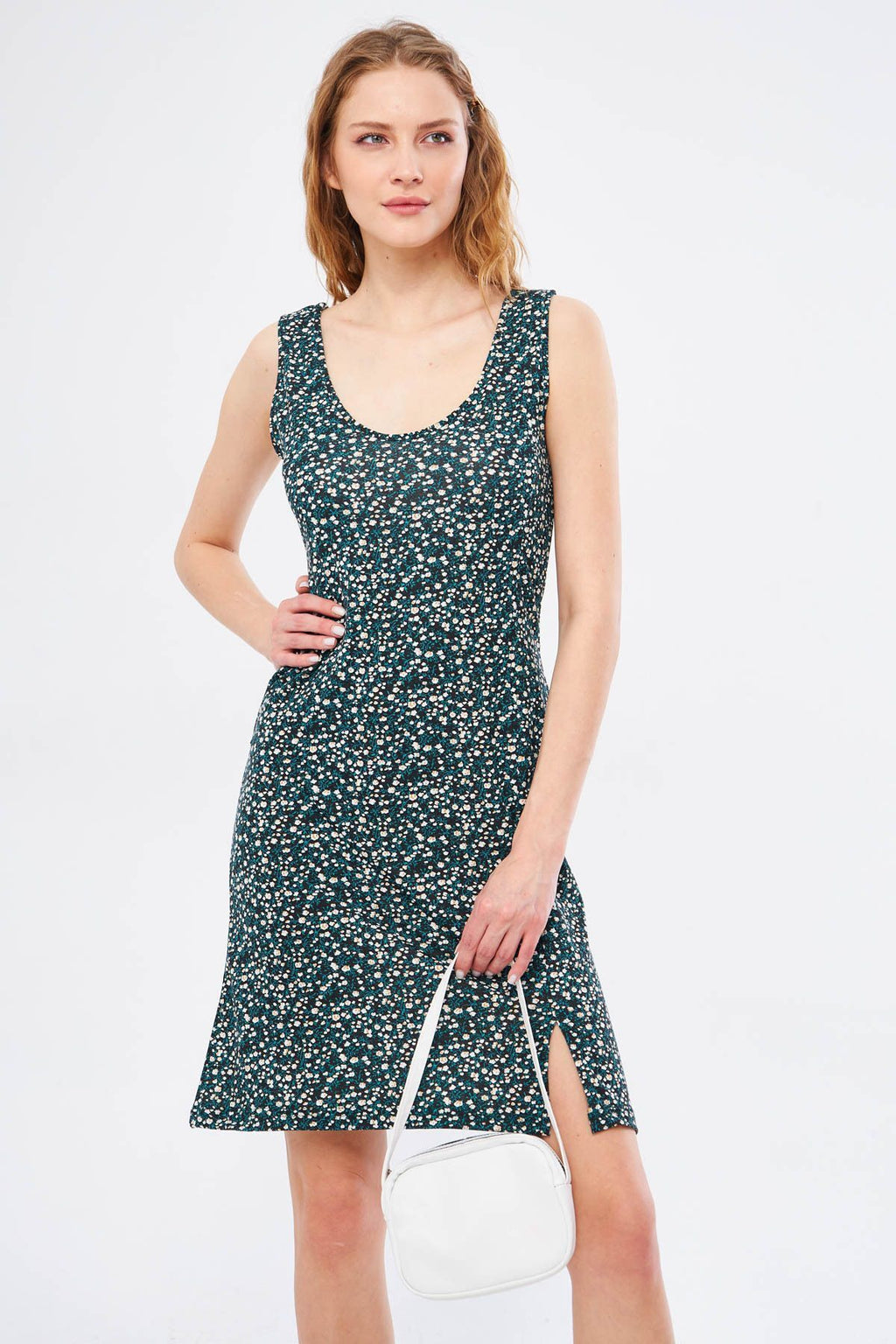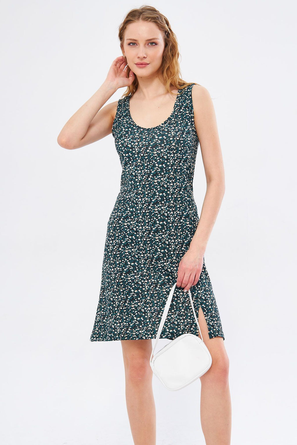 Female Black Ikosidio Dress Sitting on the Body Sleeveless Front Slit Mini Size ARM-24Y001045