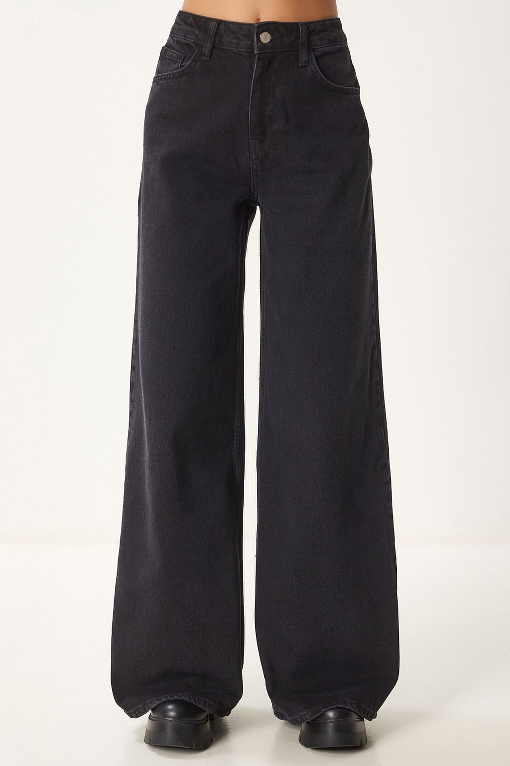 Female Black Medium Waist Wide Totage Jean FN03413