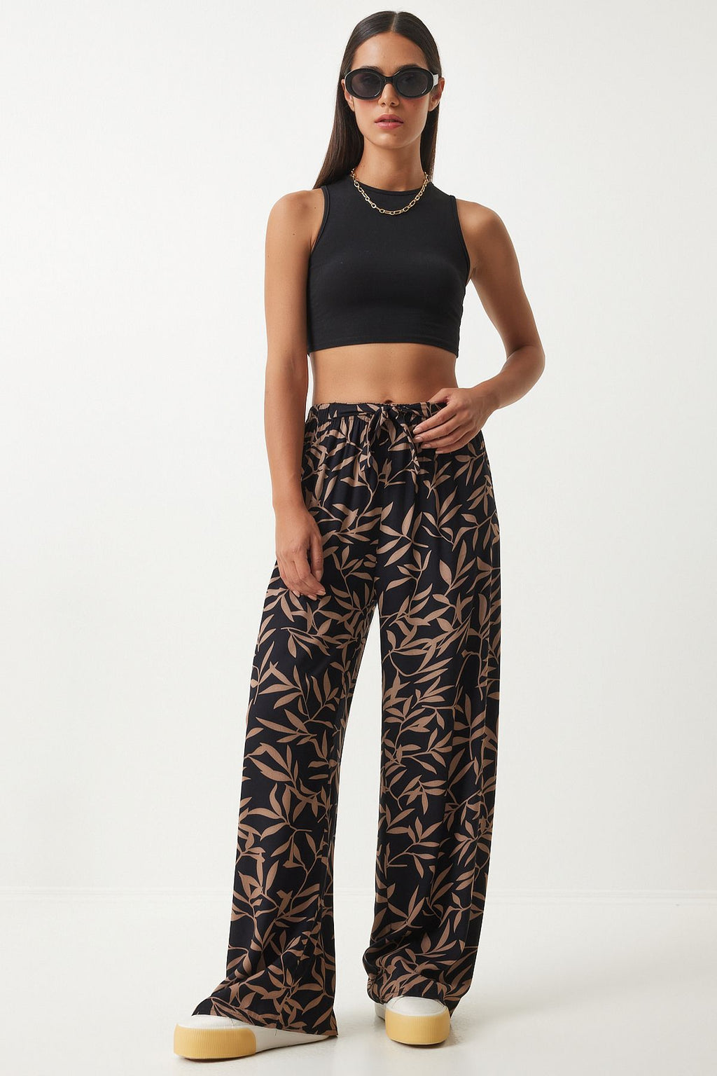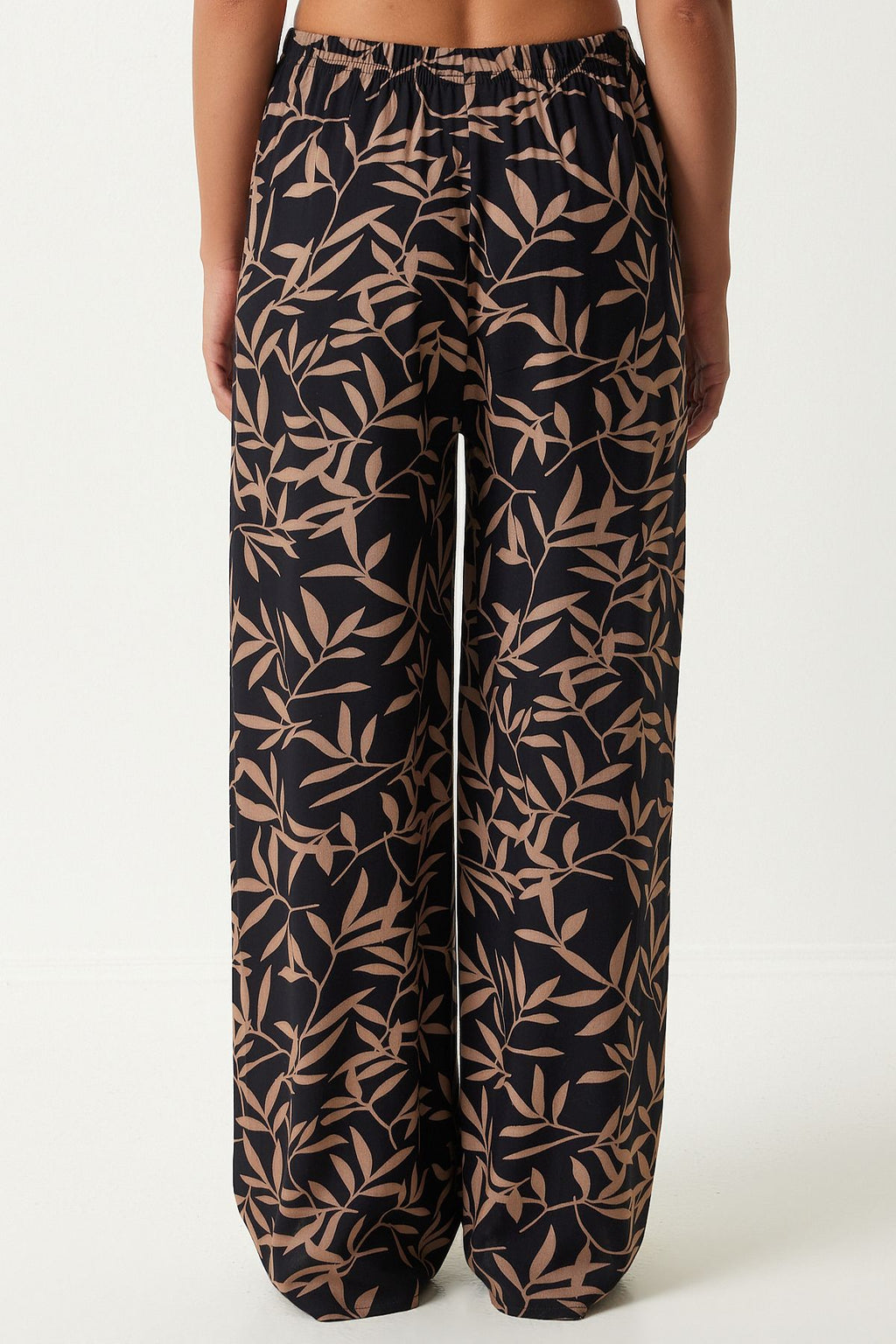 Female Black Mink Patterned Viscose Palazzo Pants EN00606