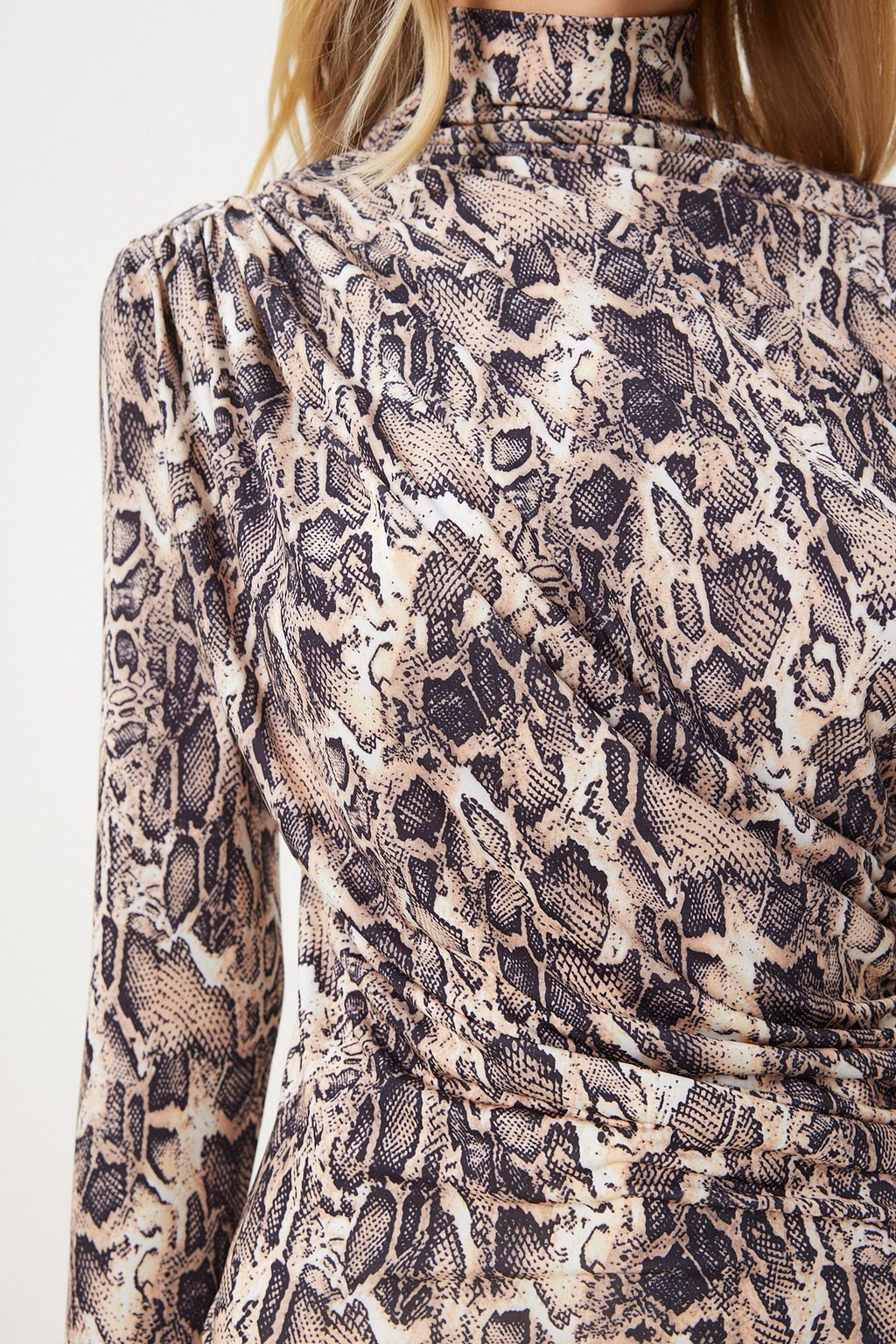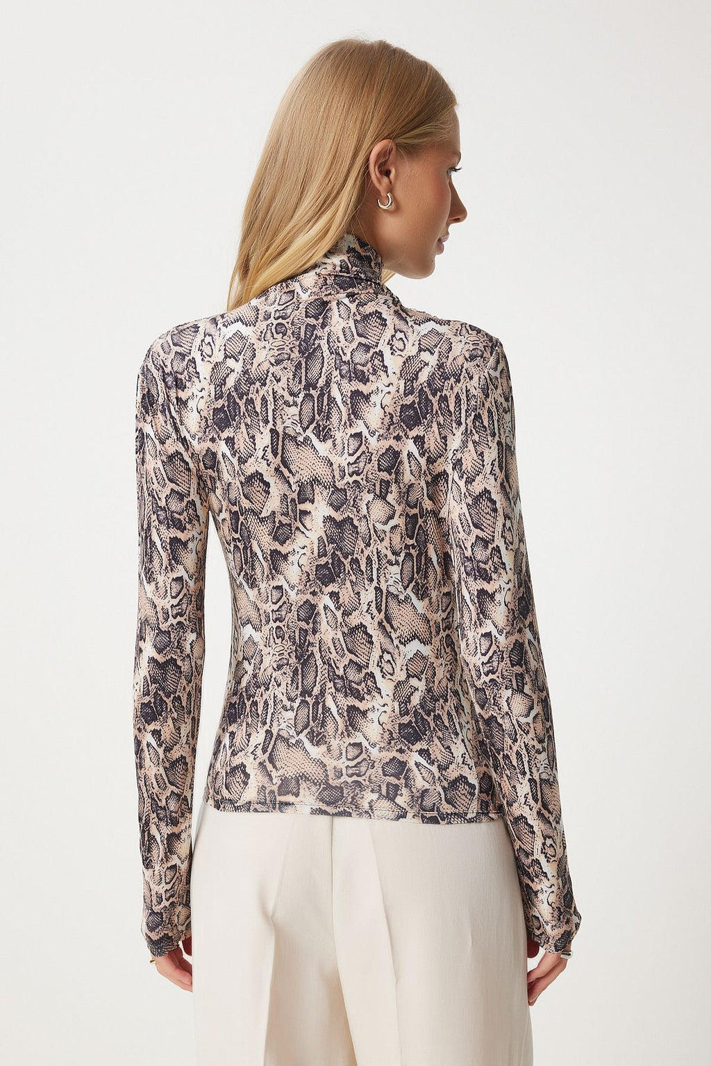 Female black mink shirring detailed upright collar sandy blouse FF00135