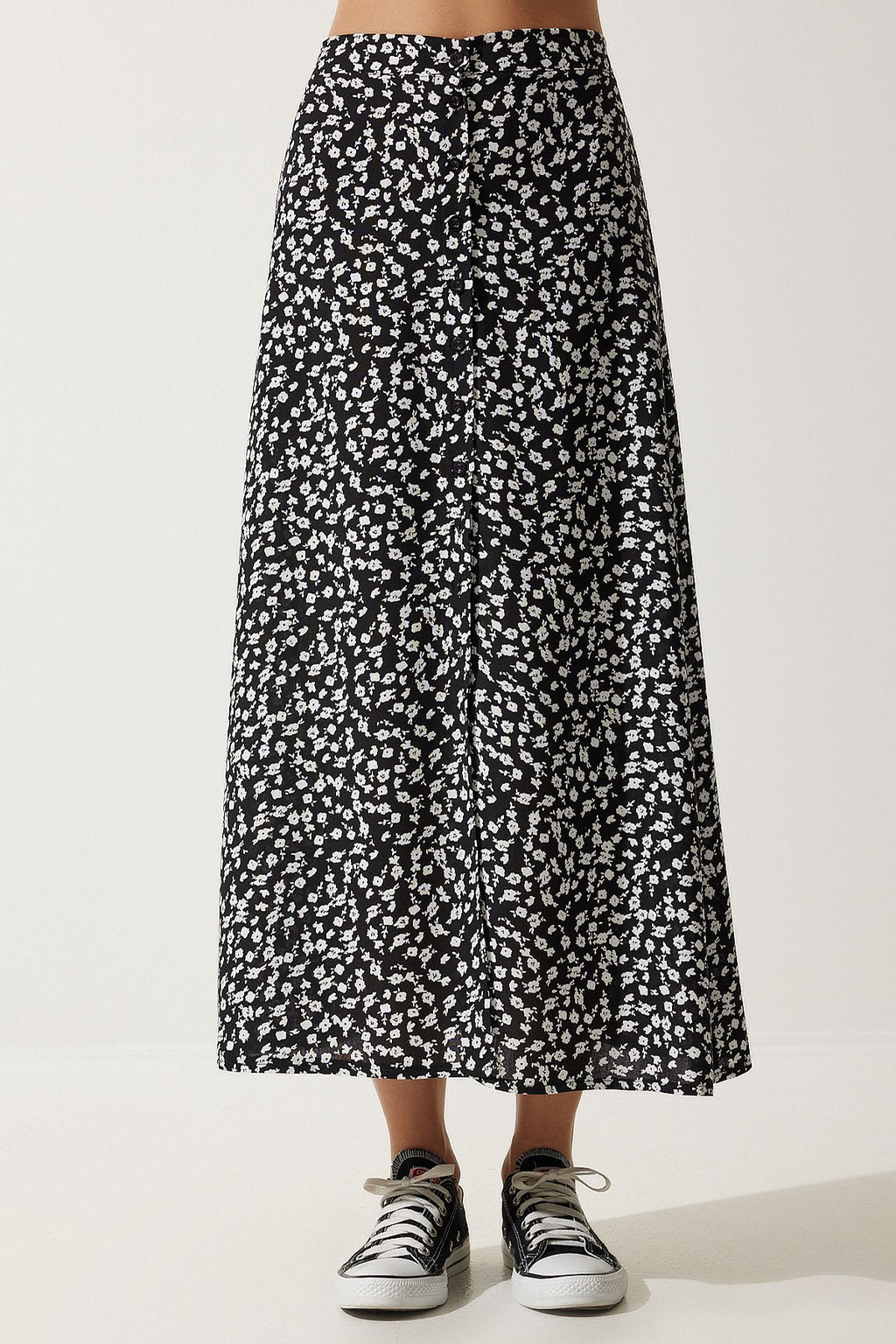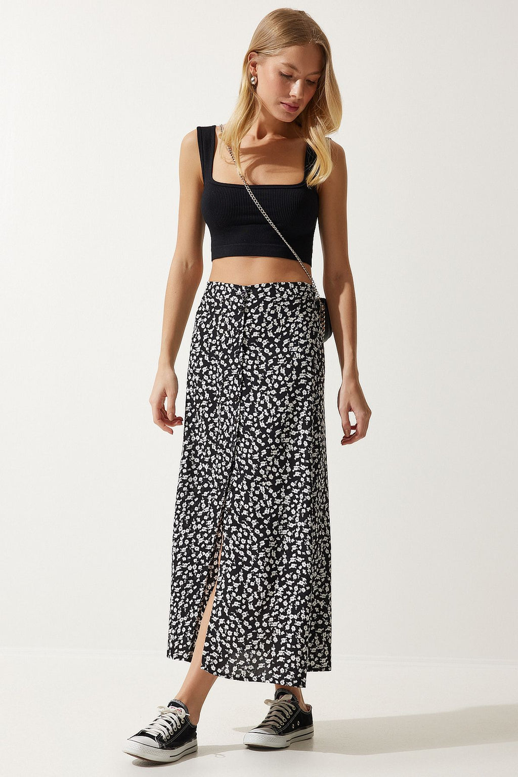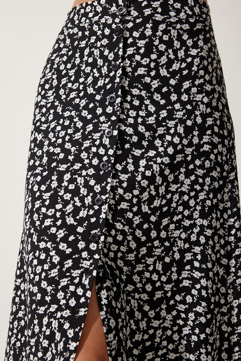 Female black patterned slit viscose skirt UB00246