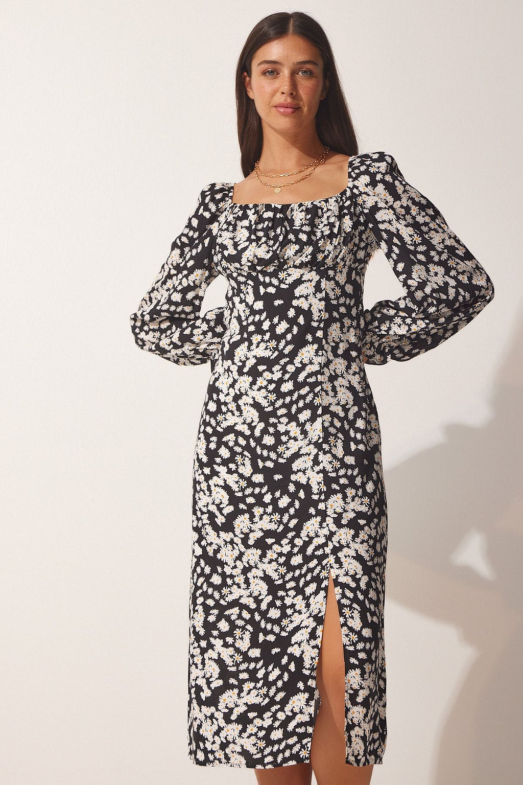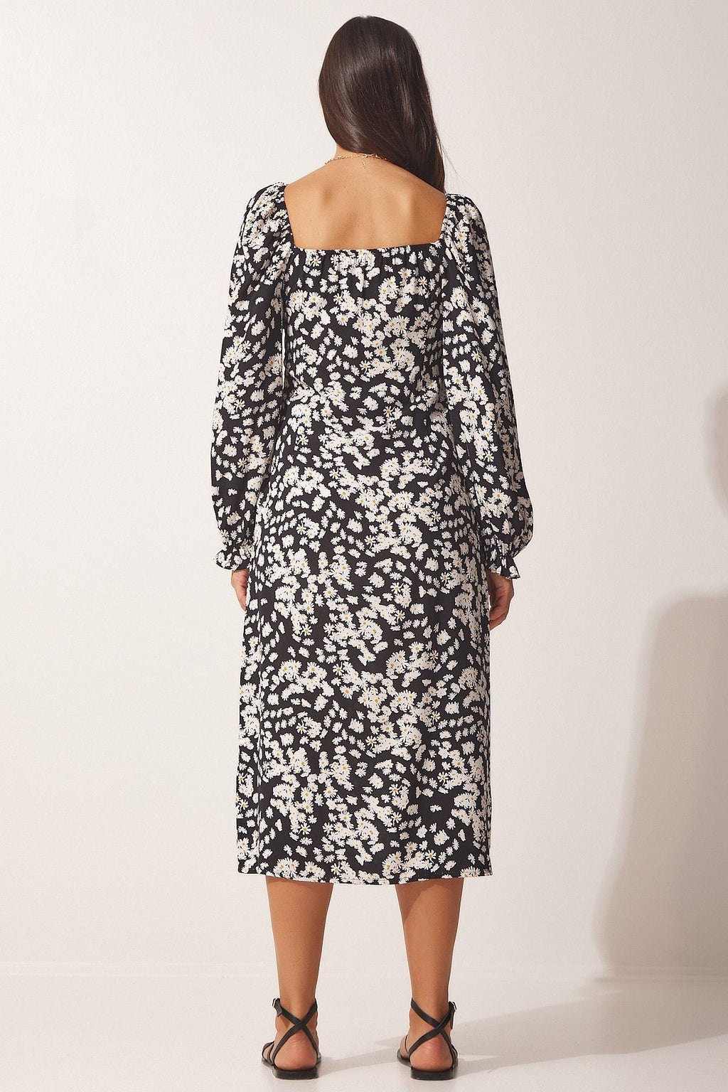 Female black patterned viscose weaving dress FN03073