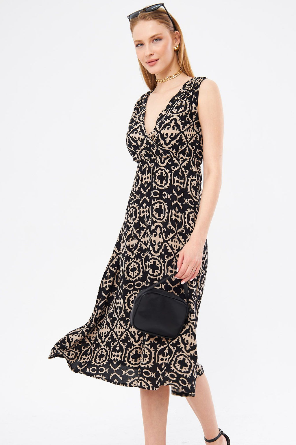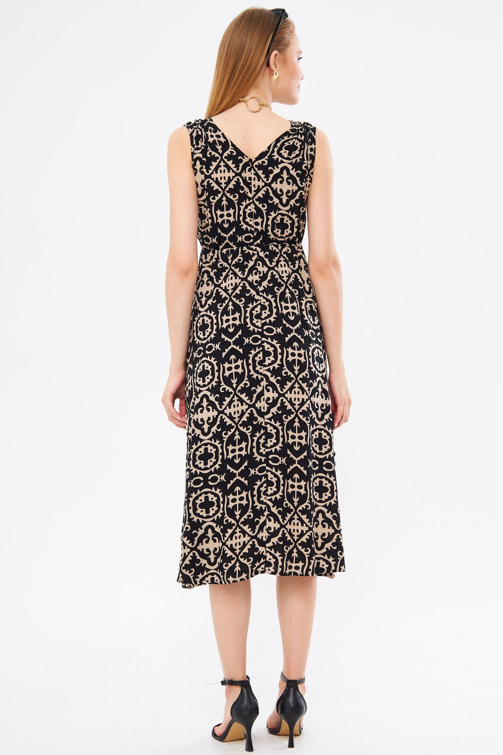 Female Black Patterned Waist and Shooter Cruve Cruve Yaka Midi Skirt Dress ARM-24Y001052