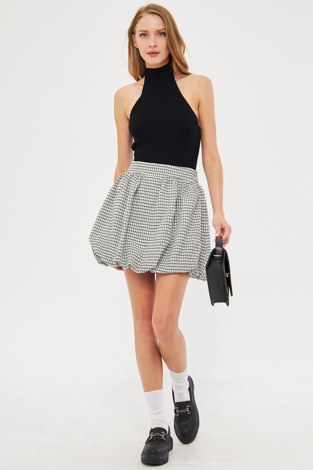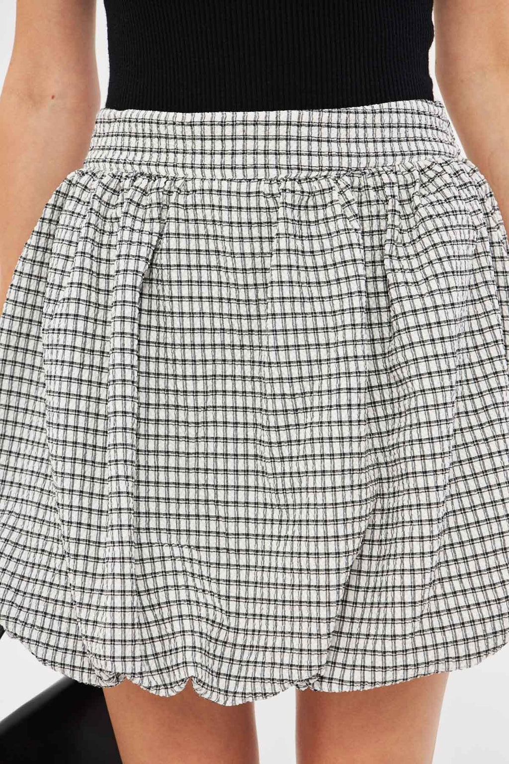 Female Black Plaid Fabric Behind Rubber Side Zippered Balloon Skirt ARM-24Y001107
