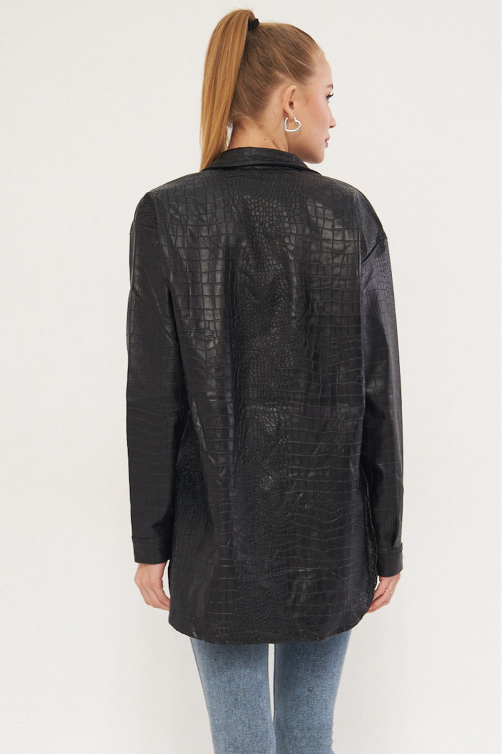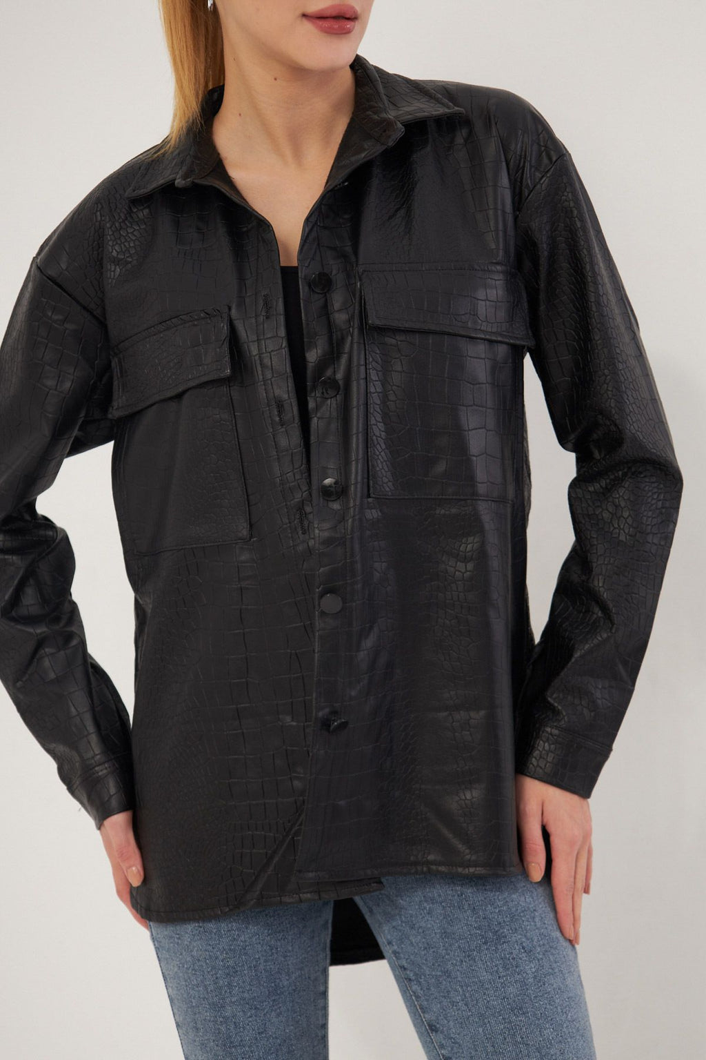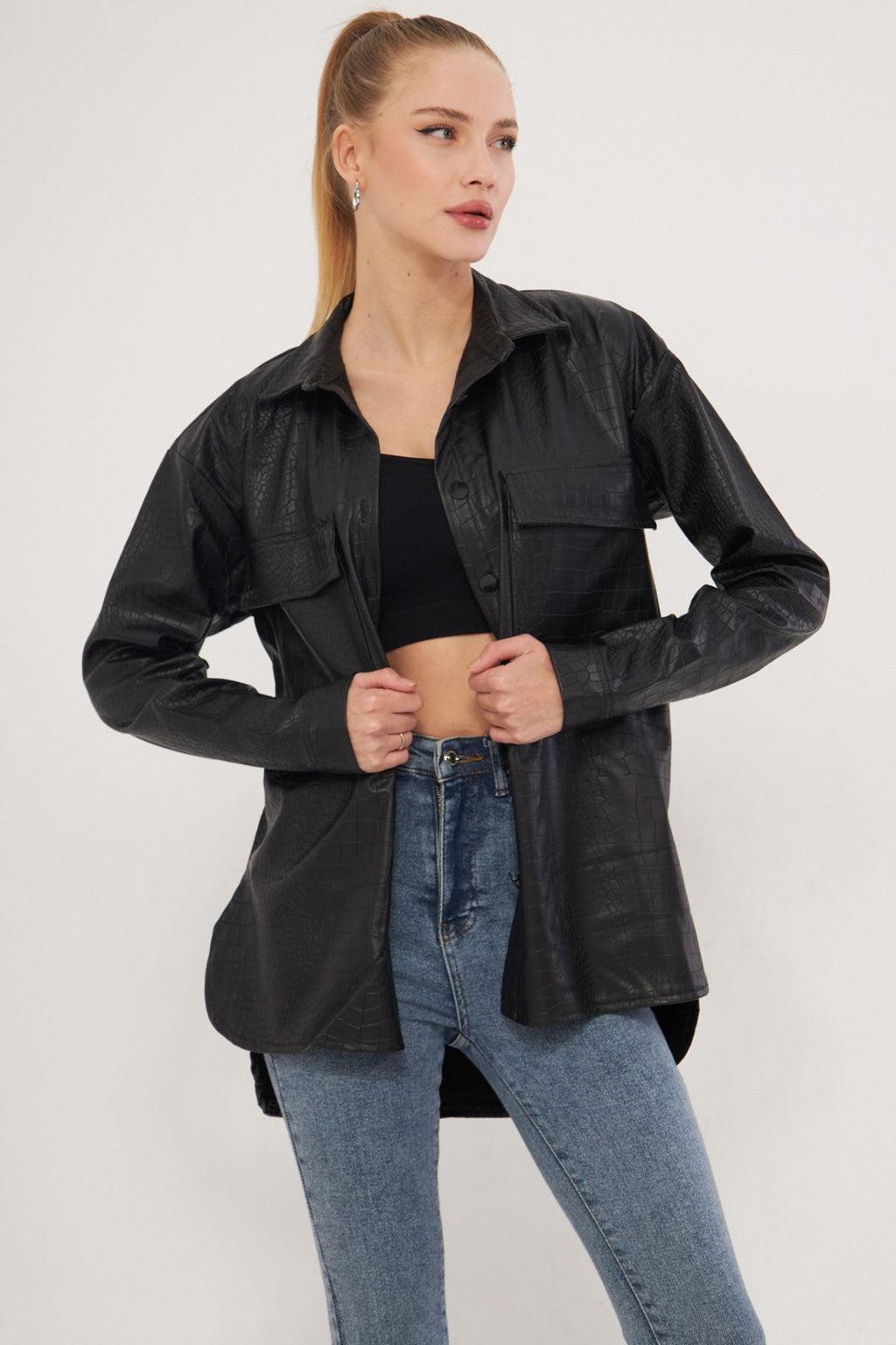 Female Black Pocket Croose Patterned Shirt ARM-25K106002