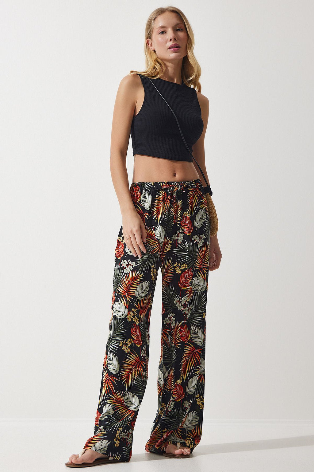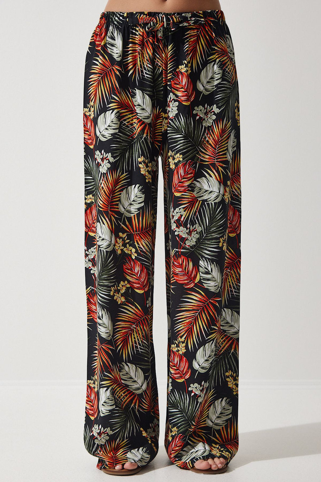 Female Black Tile Patterned Viscose Palazzo Pants EN00606