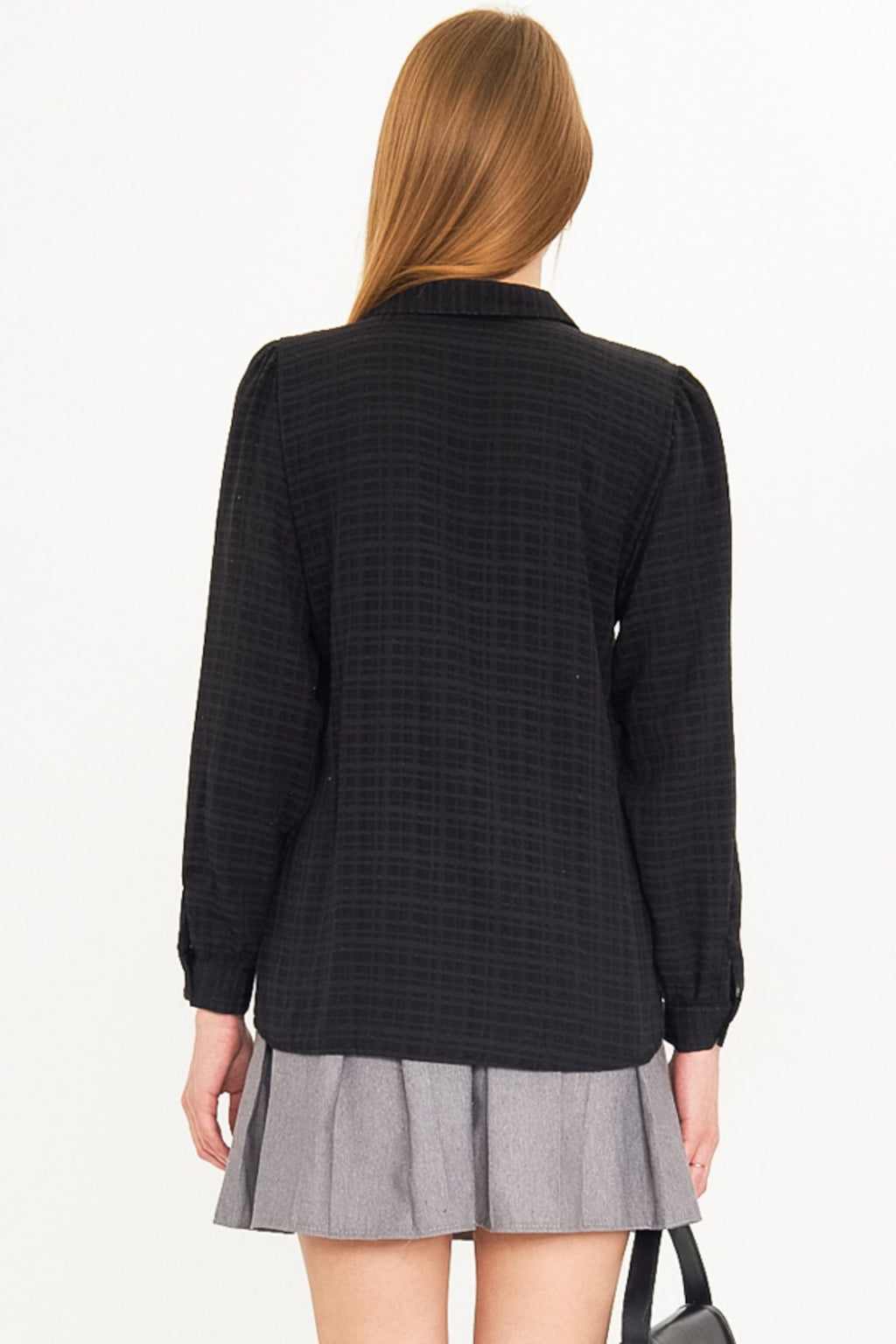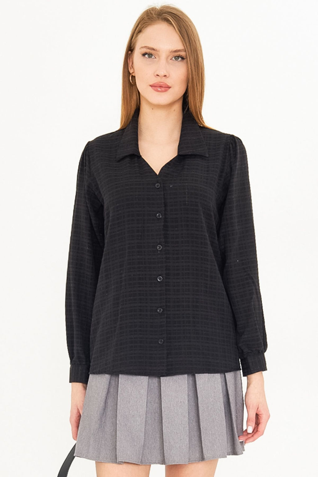 Female Black V-Neck Balloon Arm Burumcük Shirt ARM-25K001088