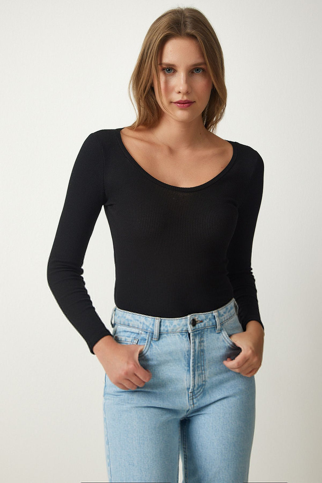 Female Black V -Neck Wick Lycra knitted blouse GT00057