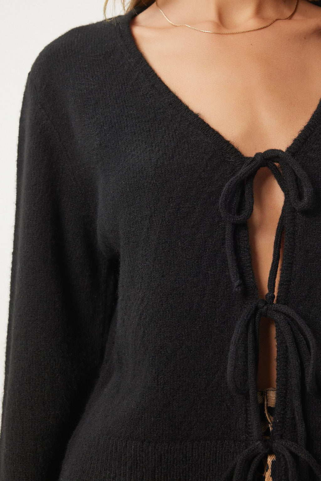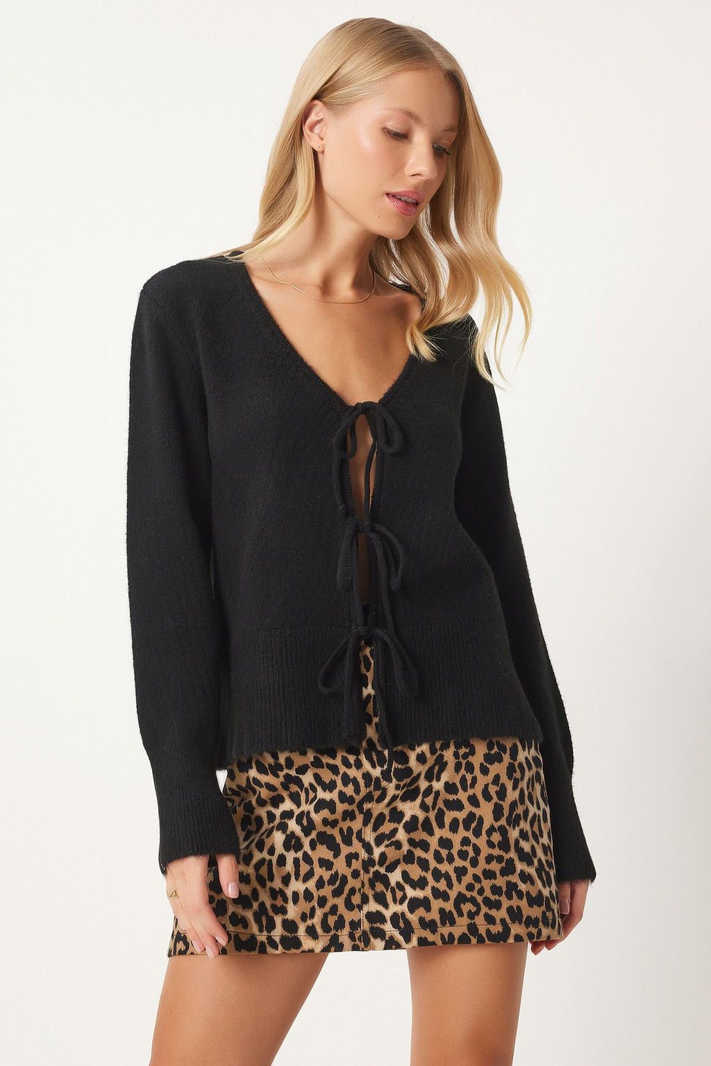 Female Black V -Yaka Bow Title Triko Cardigan PF00091