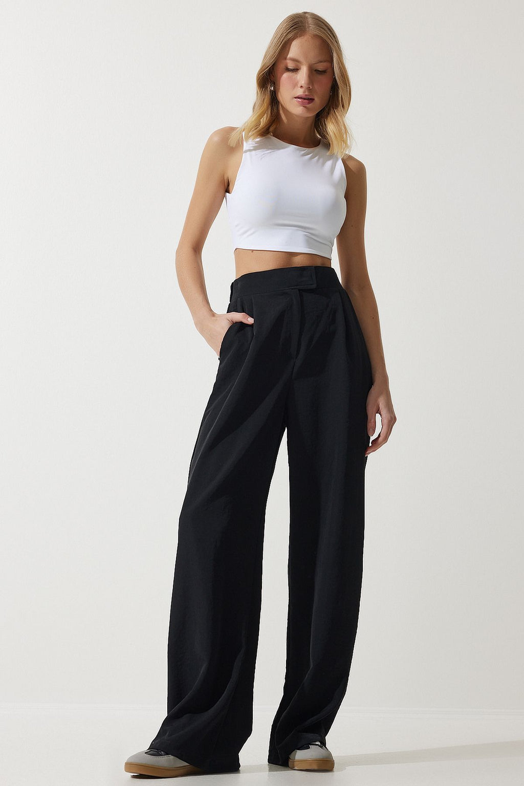 Female Black Waist Calcar Call Closed Palazzo Trousers RV00184