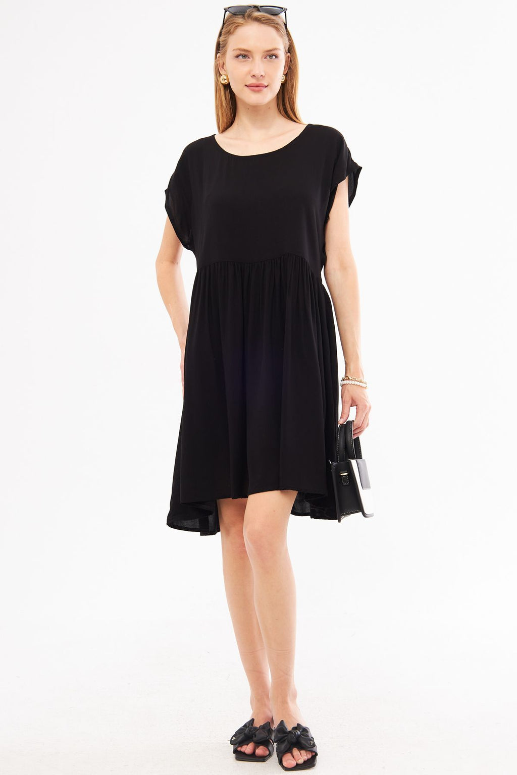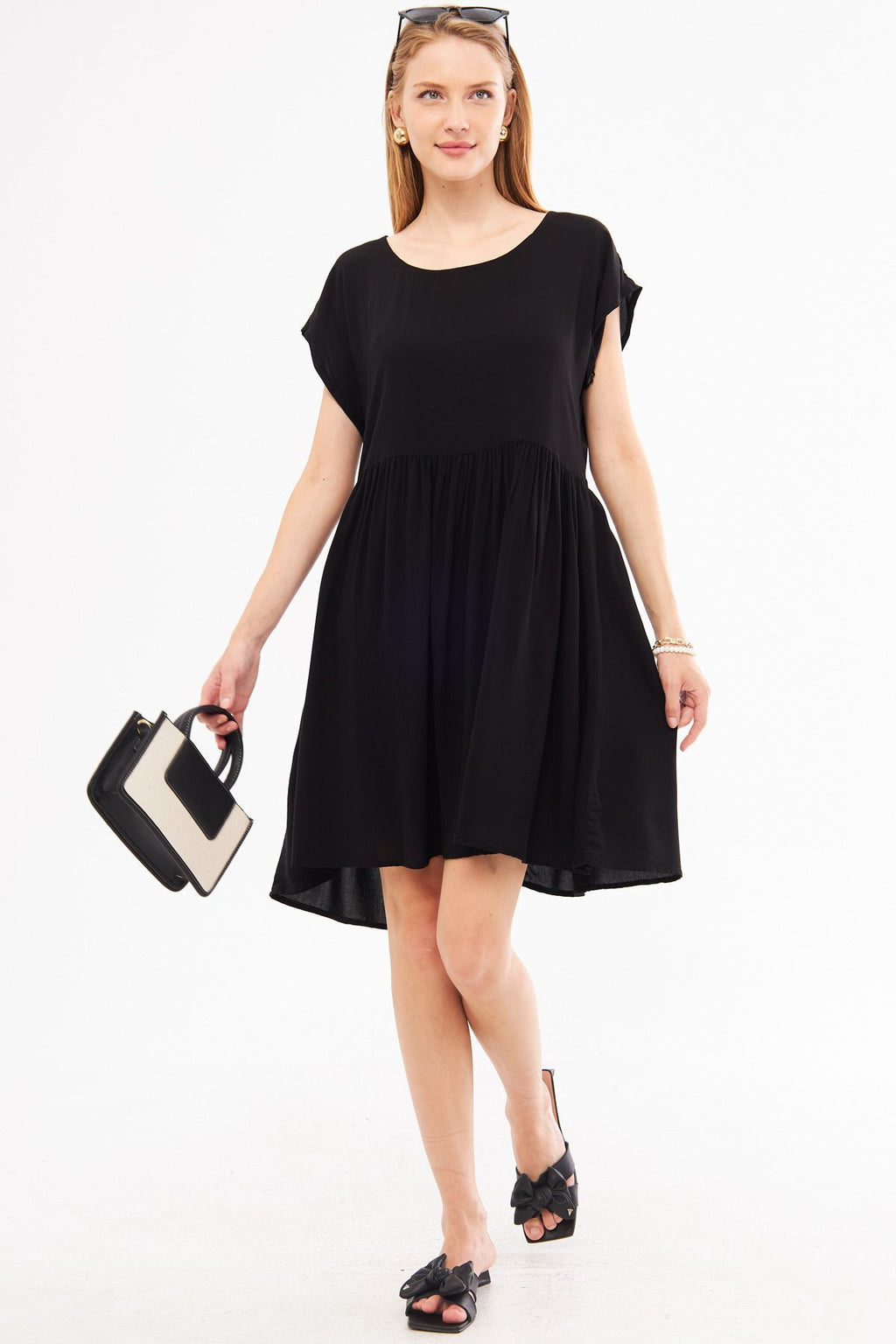 Female Black Waist Shirred Mini Dress ARM-24Y001090