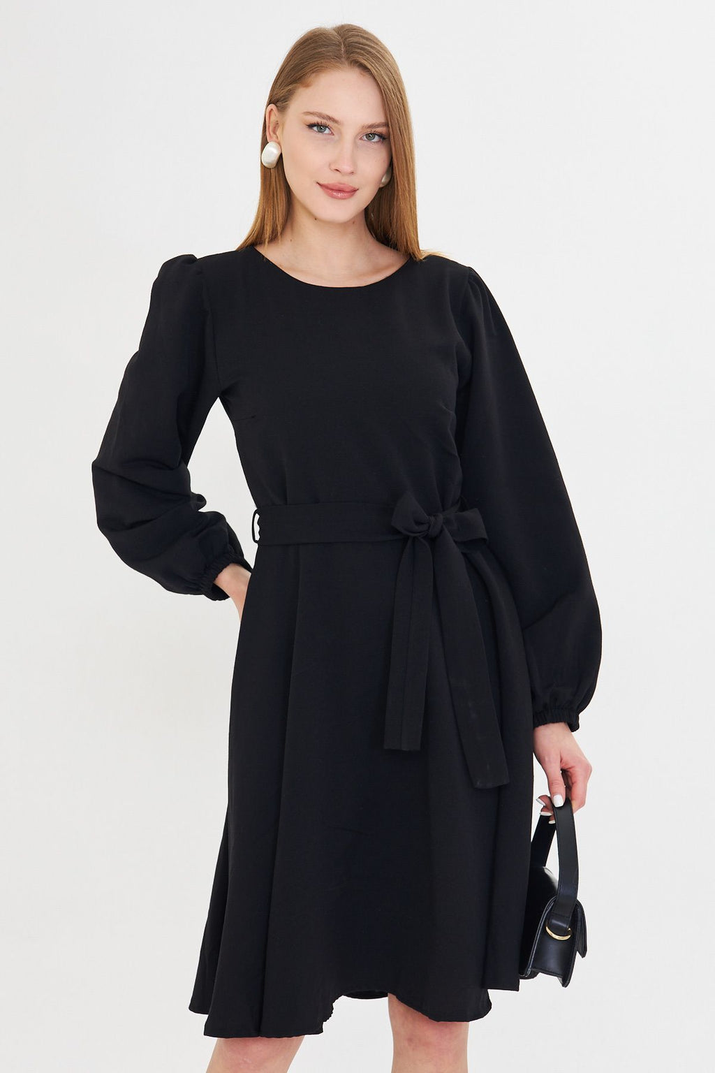 Female black zero collar behind the zipper with zipper long-arm midi size dress ARM-25Y001008