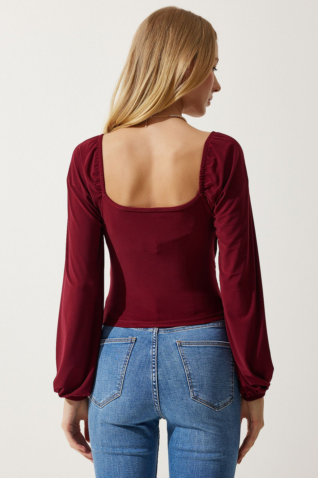 Female Bordeaux Elastic Balloon Sleeze Sandy Knitting Blouse FF00154