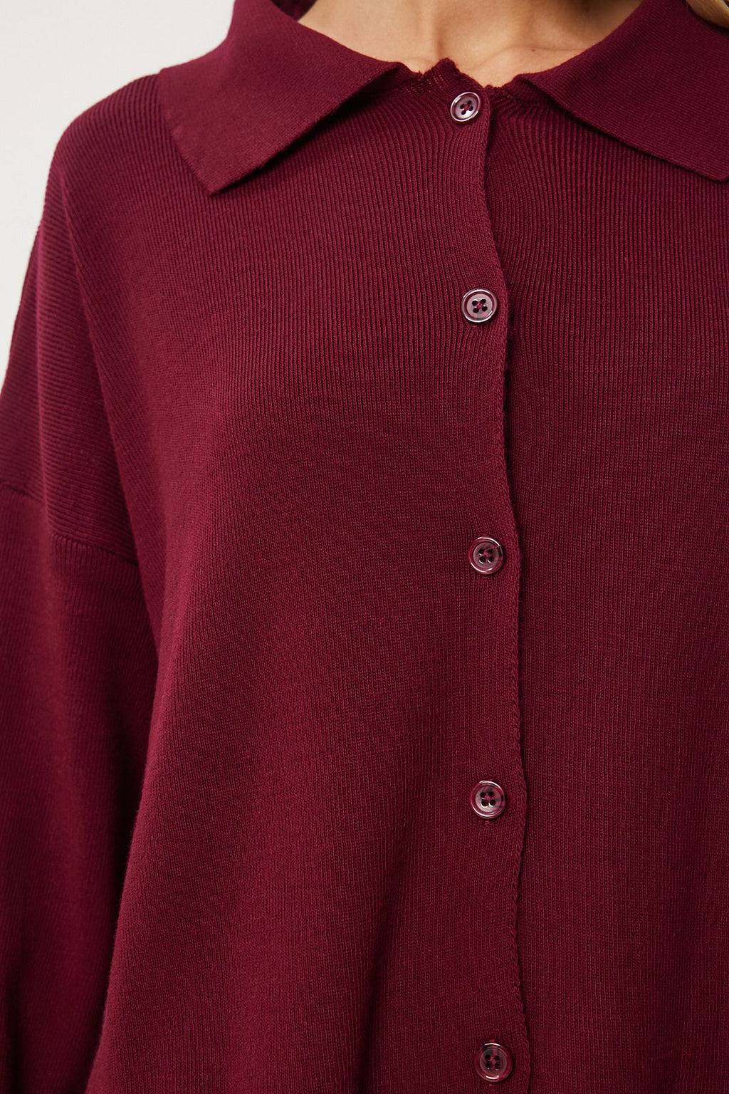 Female Bordeaux Polo Yaka knitwear cardigan skirt set PF00090