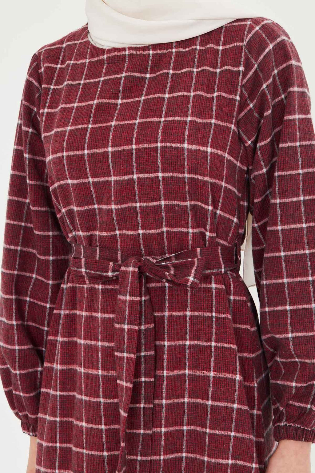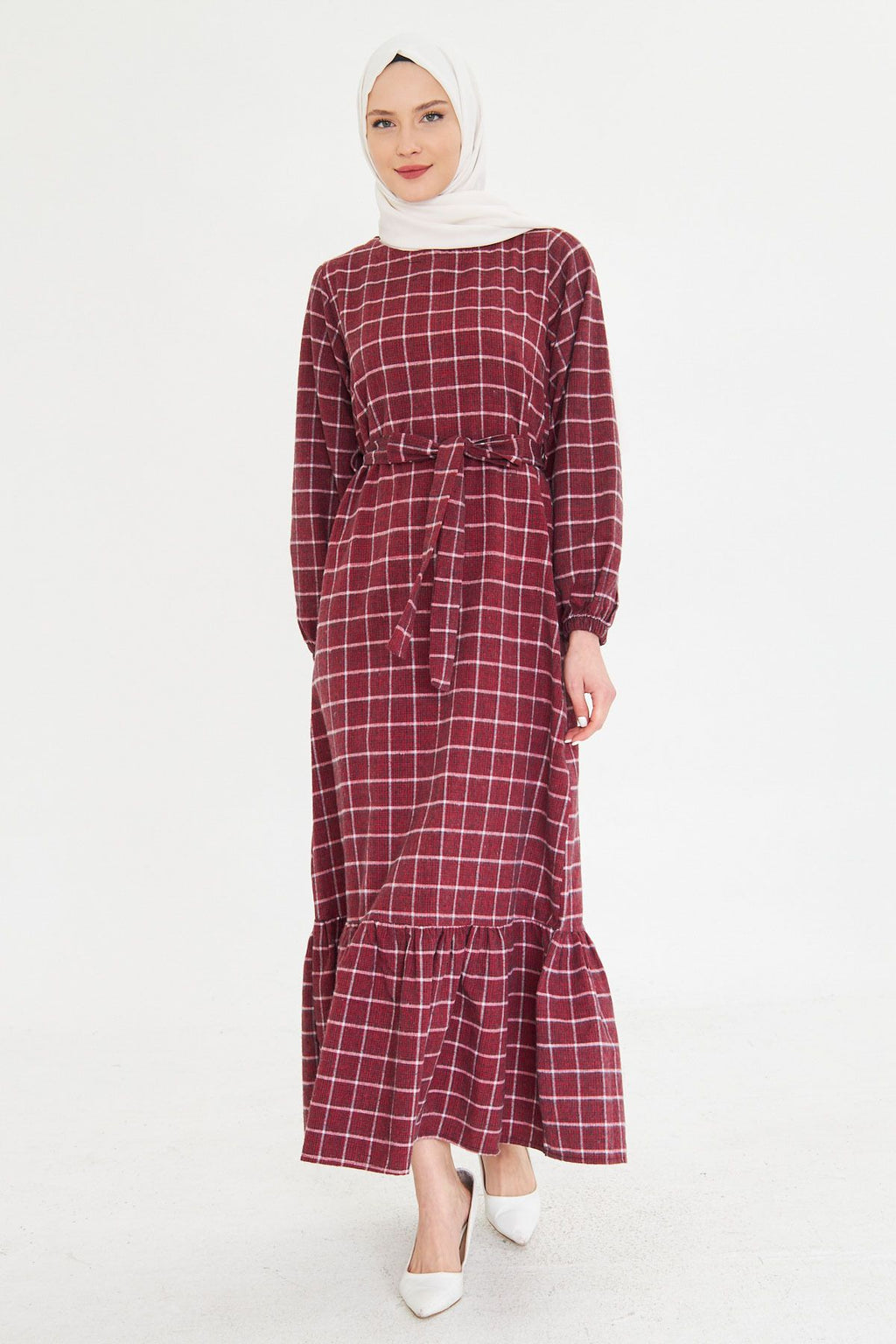 Female Bordeaux Zero Back Back Zipper Skirt Long Hijab Dress with Ruffle Born Arm-25k001102