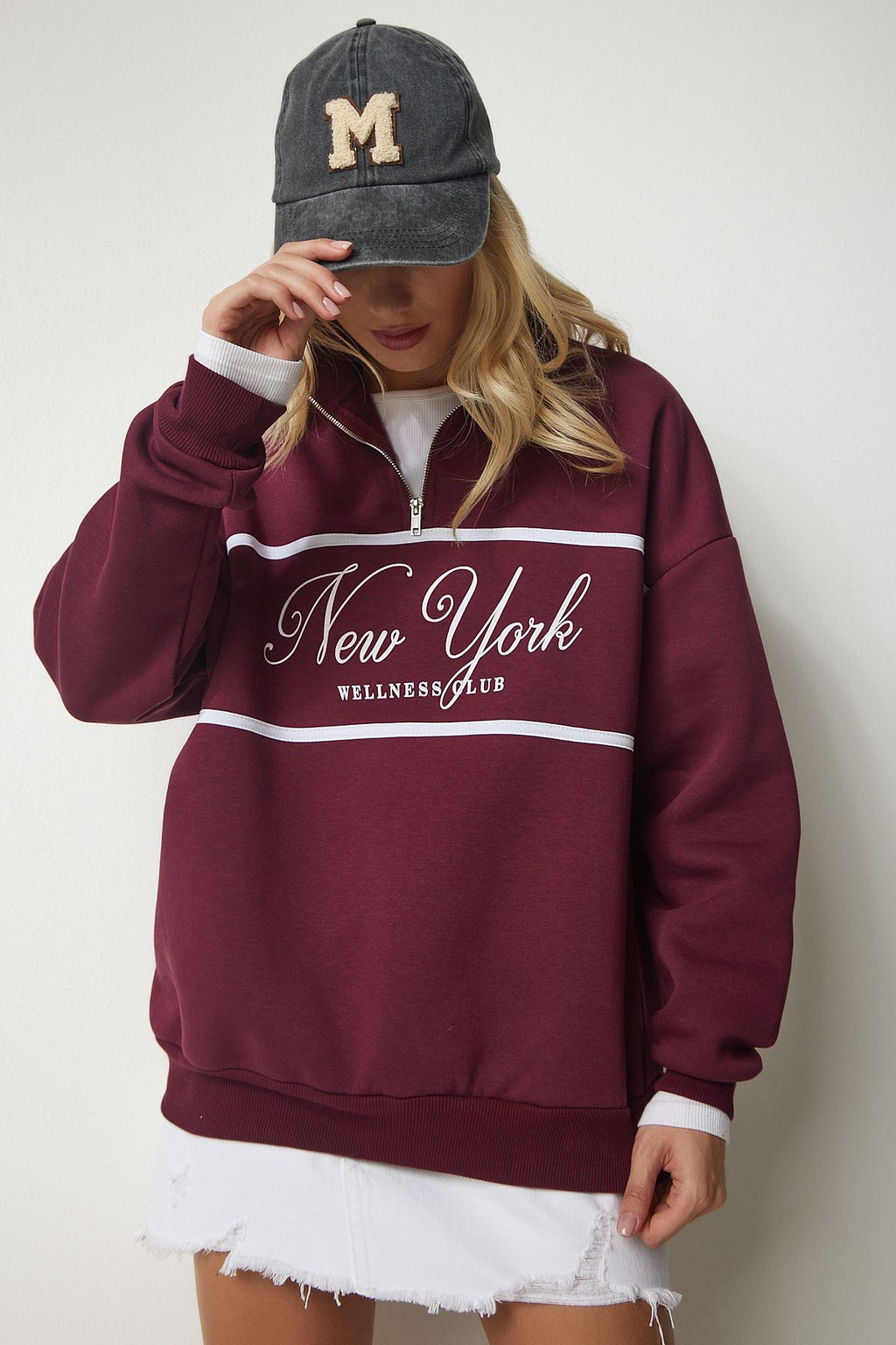 Female Bordeaux Zippered Neck Printed Sweatshirt UB00168