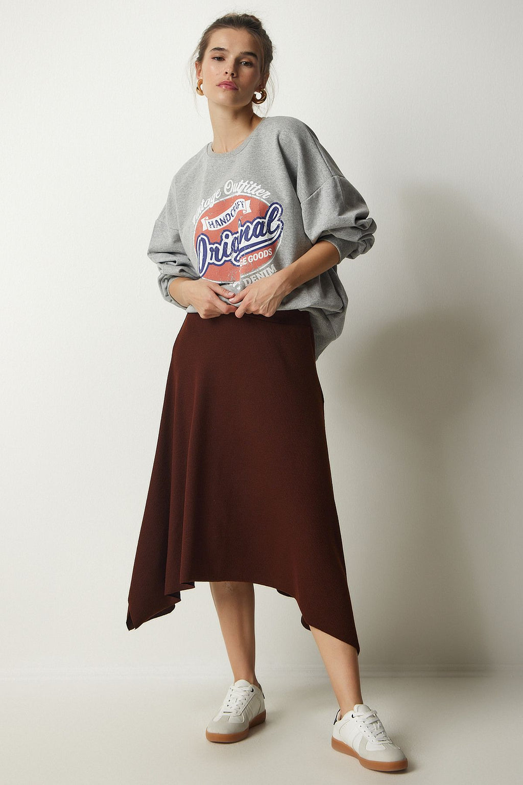 Female brown asymmetrical cut wick knitted skirt MC00227