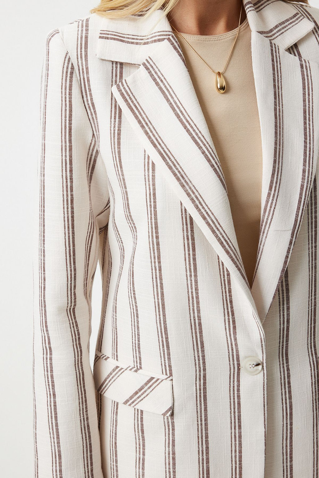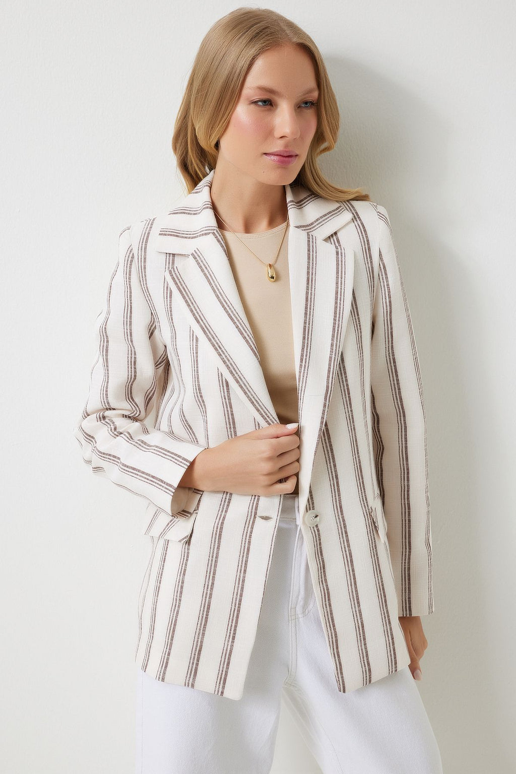 Female brown bone striped watt -linen mixed blazer jacket GP00006