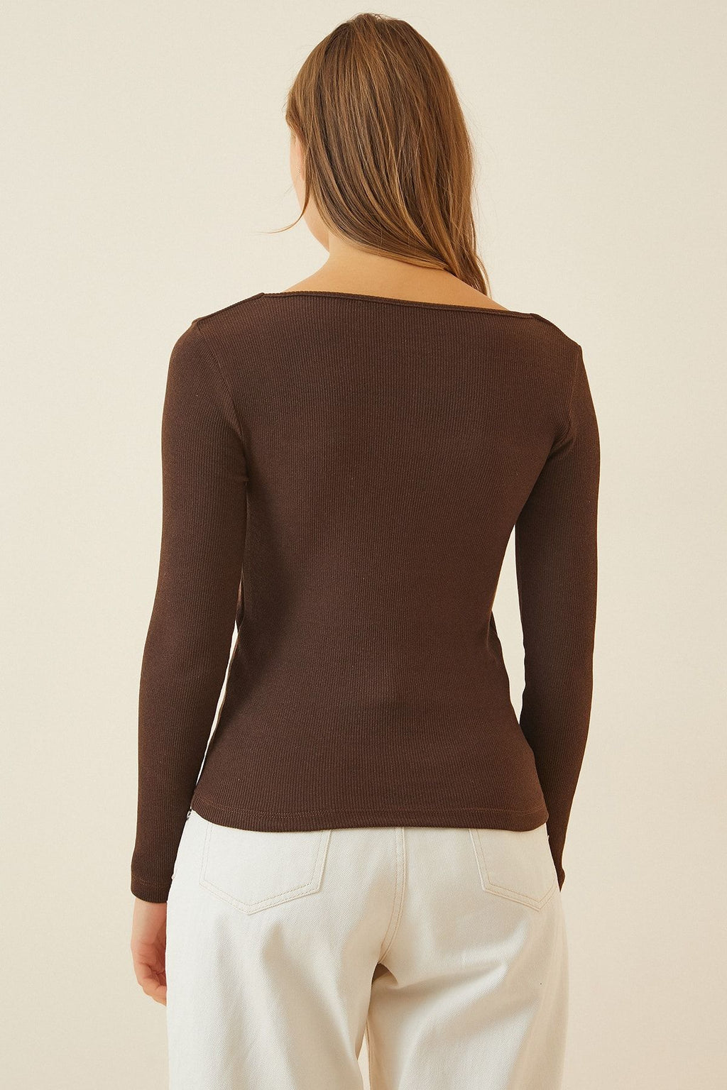 Female Brown Heart Collar Wick Knitting Blouse GT00100